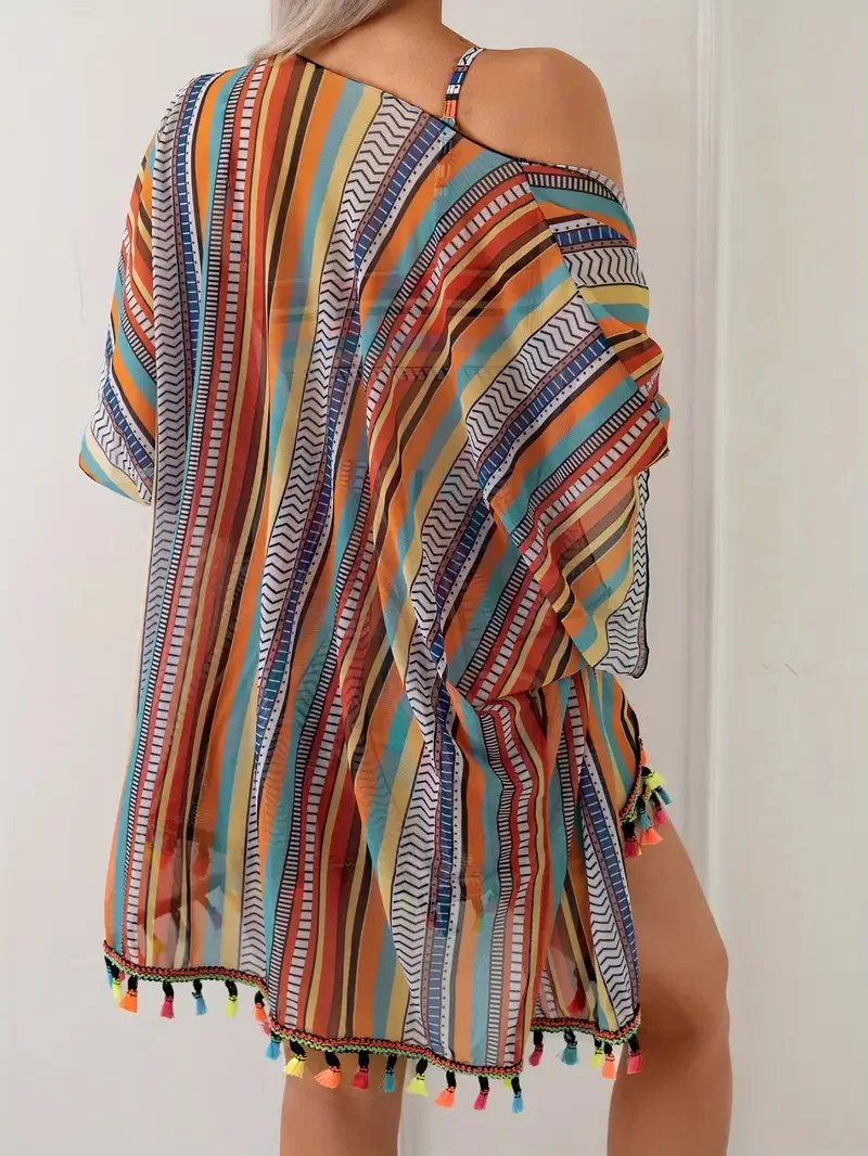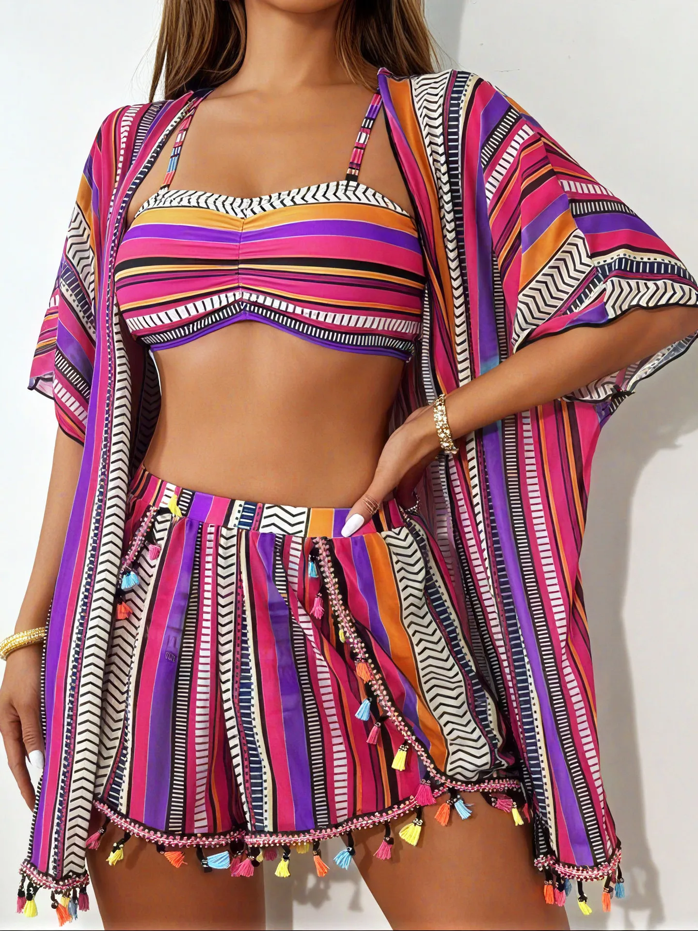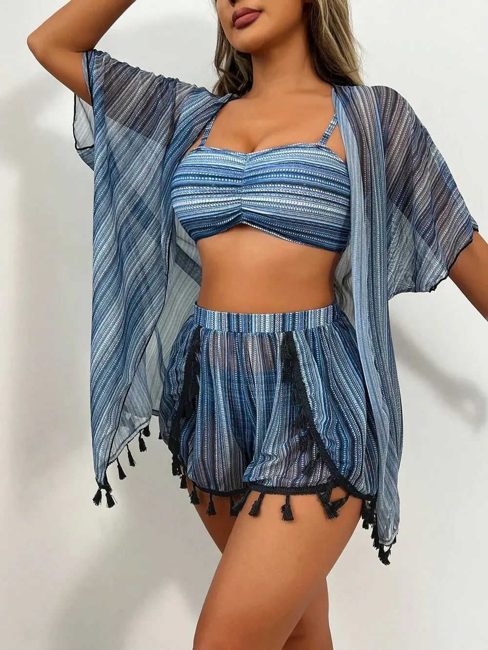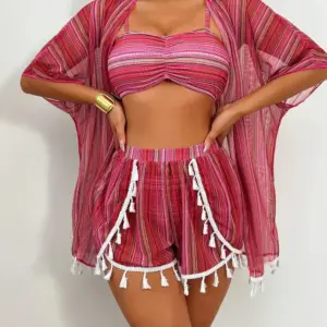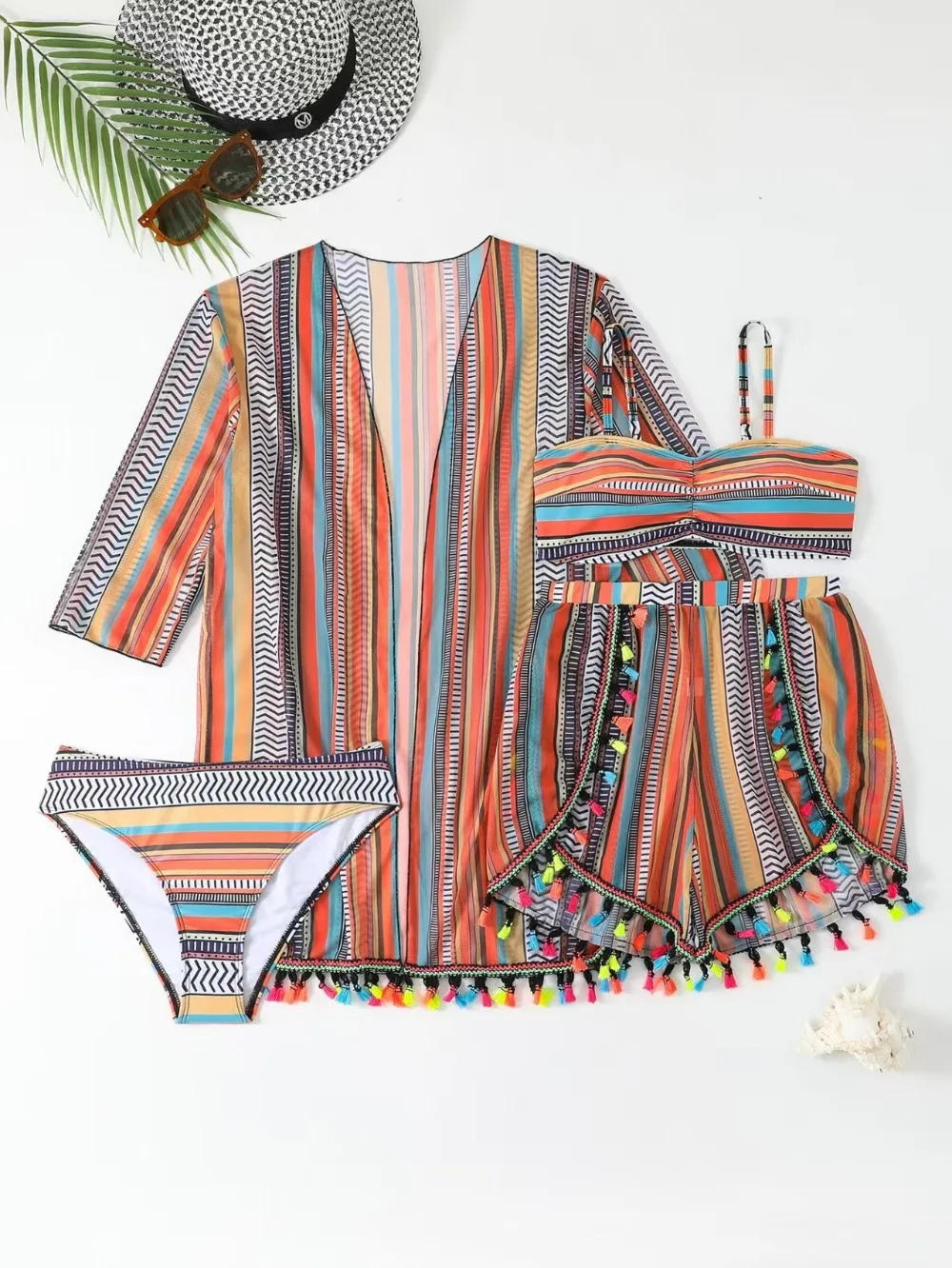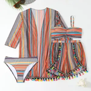 New sunscreen blouse sexy tassel bikini four-piece swimsuit women’s suit