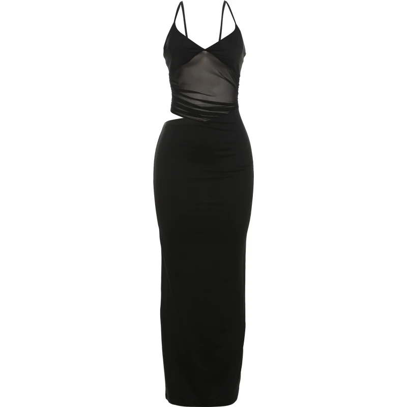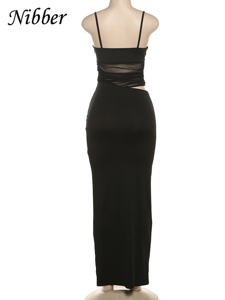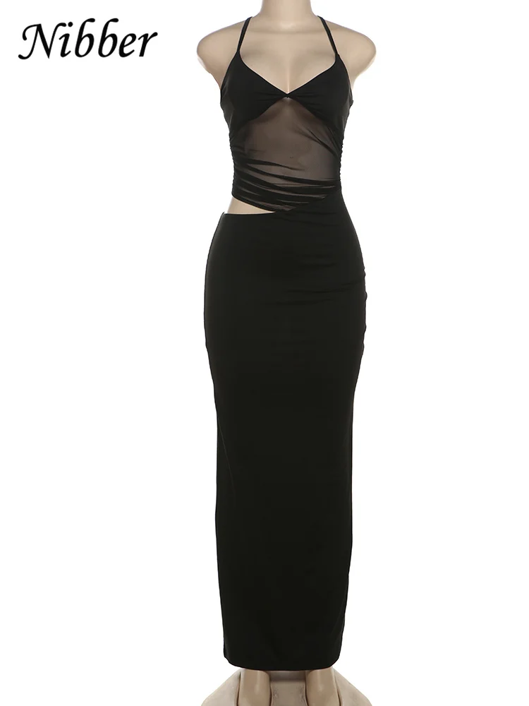 20 reviews for Nibber Mesh Patchwork Dress Women Sexy Backless Hollow Sleeveless 2025 Summer Trend Skinny Stretch Elegant Clubwear Maxi Bodycon