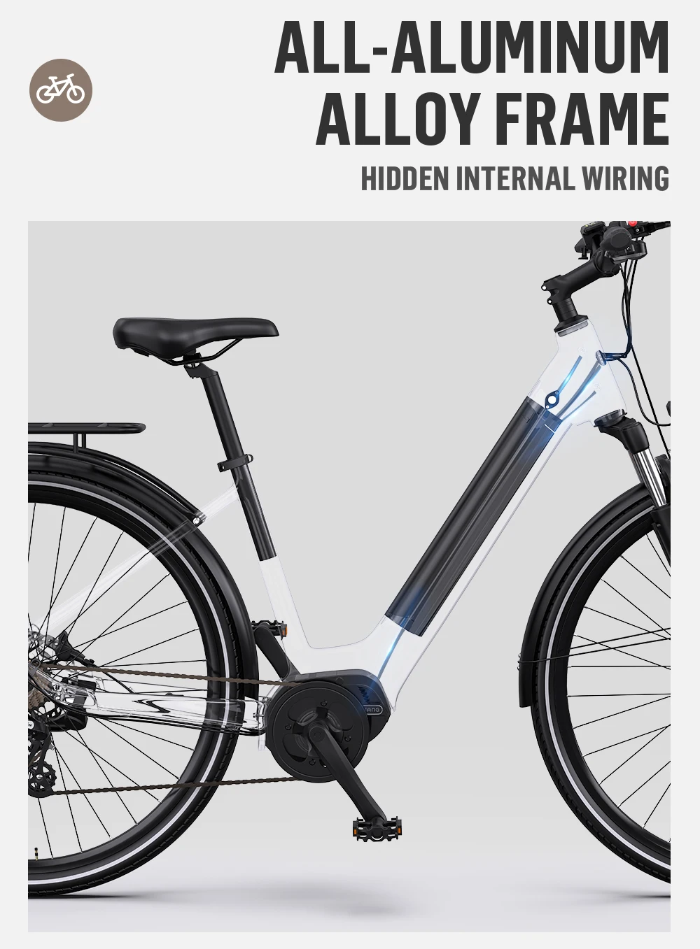 Onesport OT07 Electric Bike 250W 36V 14Ah 700*45C Tire Lightweight Trekking City Commuting Step-Thru E-bike Hydraulic Disc Brake
