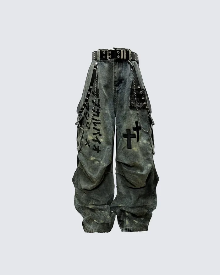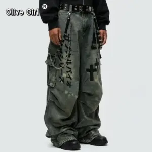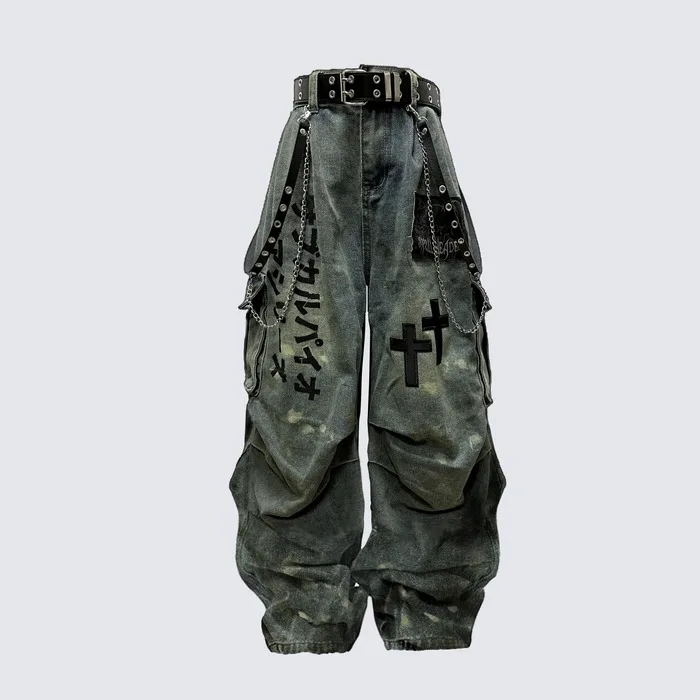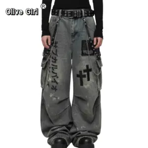 1 review for Plus Size Skull Cross Women’s Jeans Trousers Denim Pants American Retro Vibe Wide-legged Dragging Oversized Baggy Pants