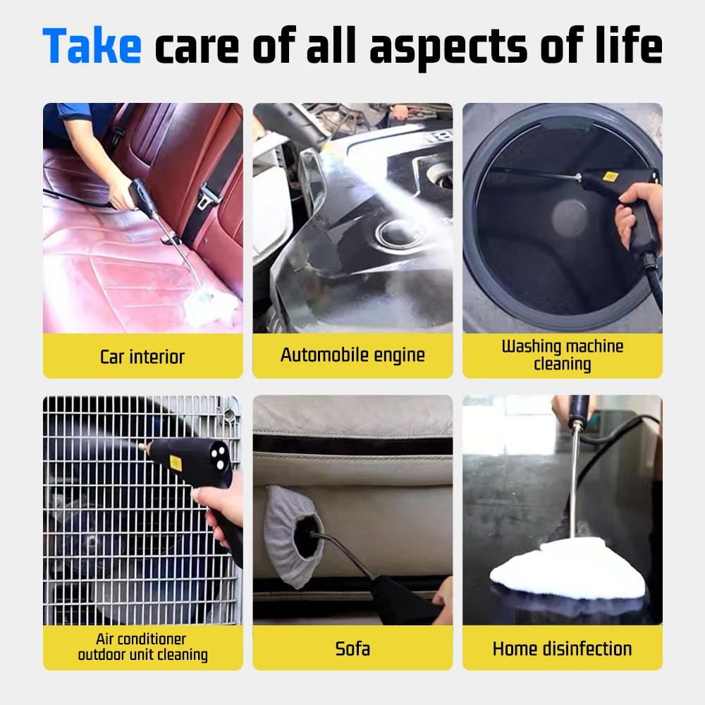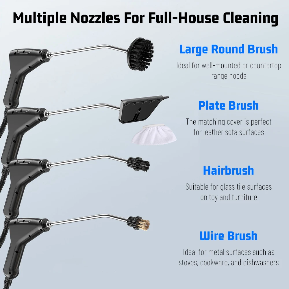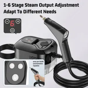 2.Portable and Adjustable Design: As a pressurized handheld steam cleaner, it comes with a 6-level adjustable handle, allowing you to precisely control the steam intensity.Its compact size makes it a great mini steam cleaner, perfect for use at home, in the office, or even as a steam cleaner for car interiors.