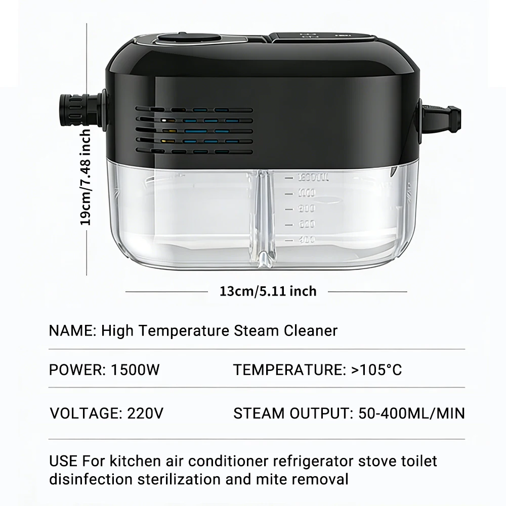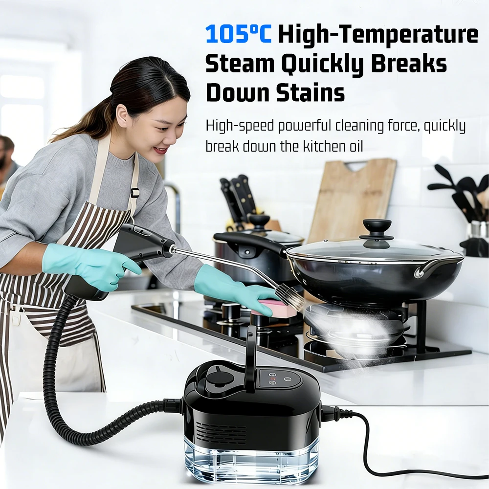1.Exceptional Cleaning Power: The steam cleaner features a remarkable 1500W power, generating high – temperature steam up to 130°C. This makes it a top – notch steam machine for cleaning, effectively eliminating dirt, grease, and grime from all surfaces.