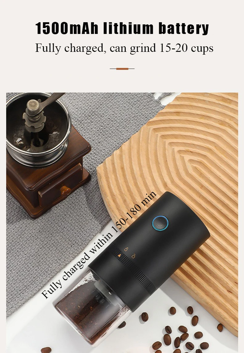 Package includes: coffee grinder * 1, cleaning brush * 1, instruction manual * 1, charging cable * 1