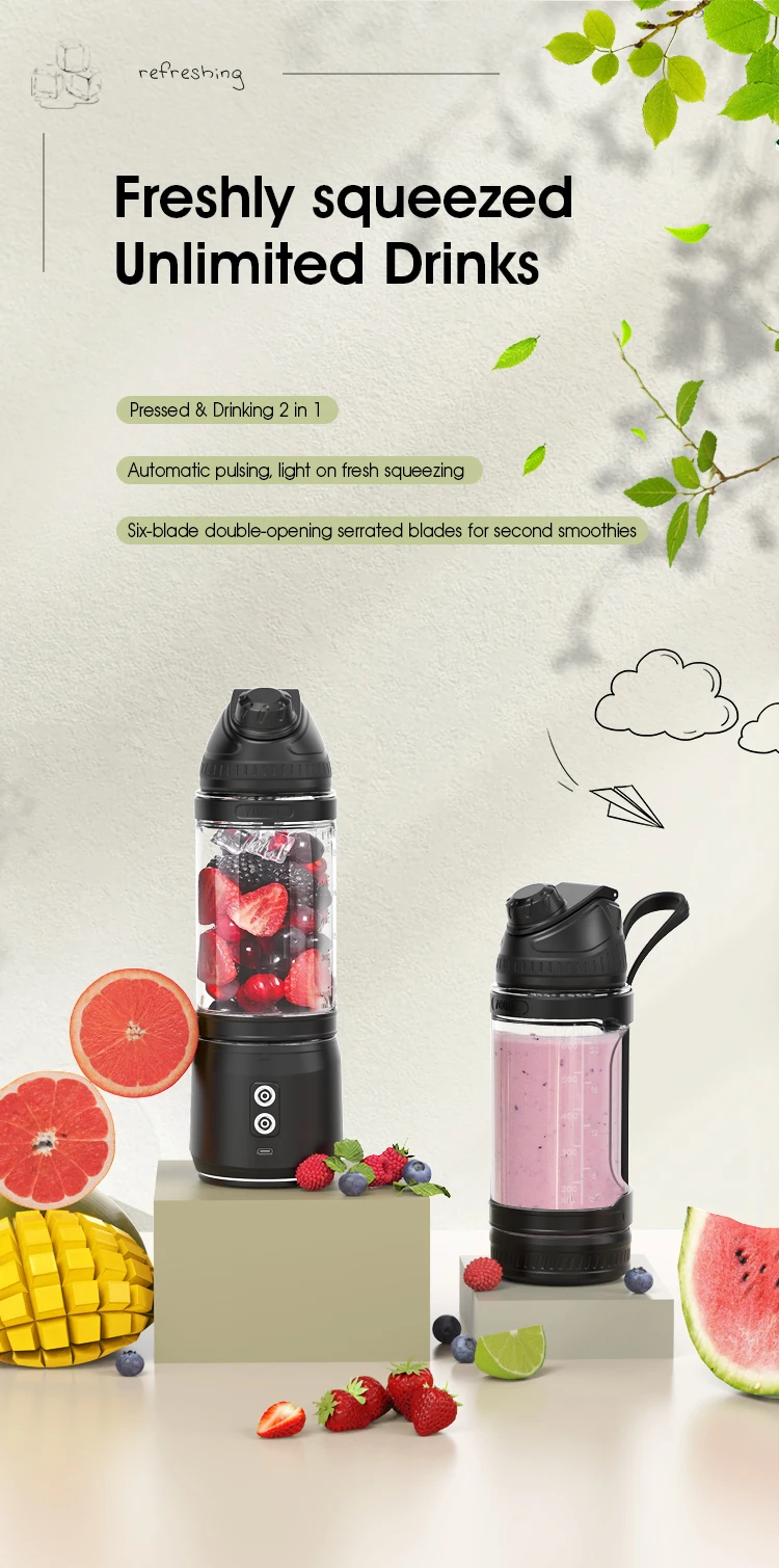 2. The blender has a capacity of 700ml, which is enough to hold fruits, vegetables and ice cubes, and the lid has a direct-drinking design,concealed soft rubber handle for easy carrying and handling.Push button to switch on cleaning when cleaning the cup, one-touch cleaning convenience.