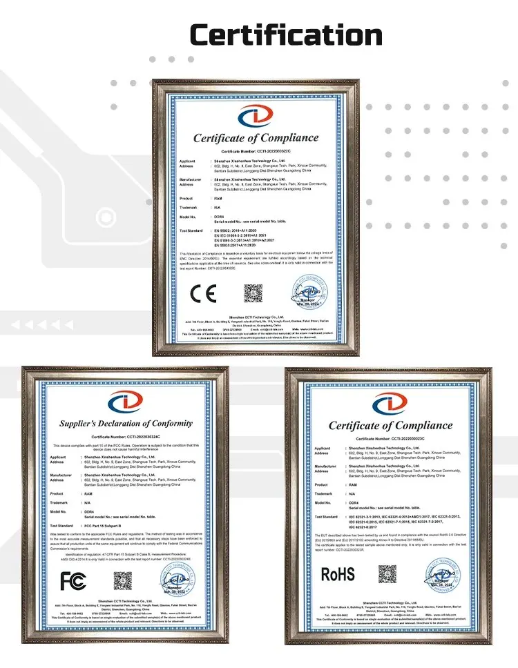 • JEDEC annotation.Selected original chips,100% strict testing,Excellent stability and compatibility.