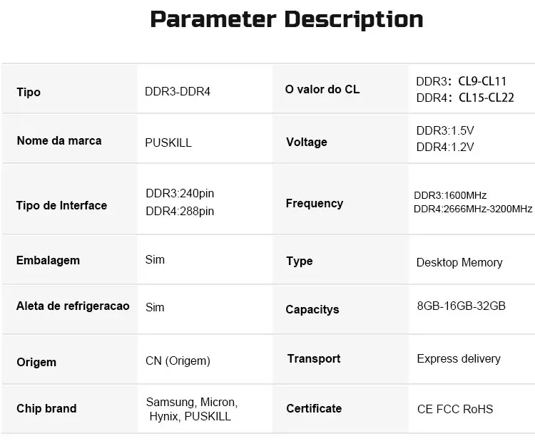 *All products are manufactured with original chips and brands include Samsung, Hynix, Micron, PUSKILL,etc.
