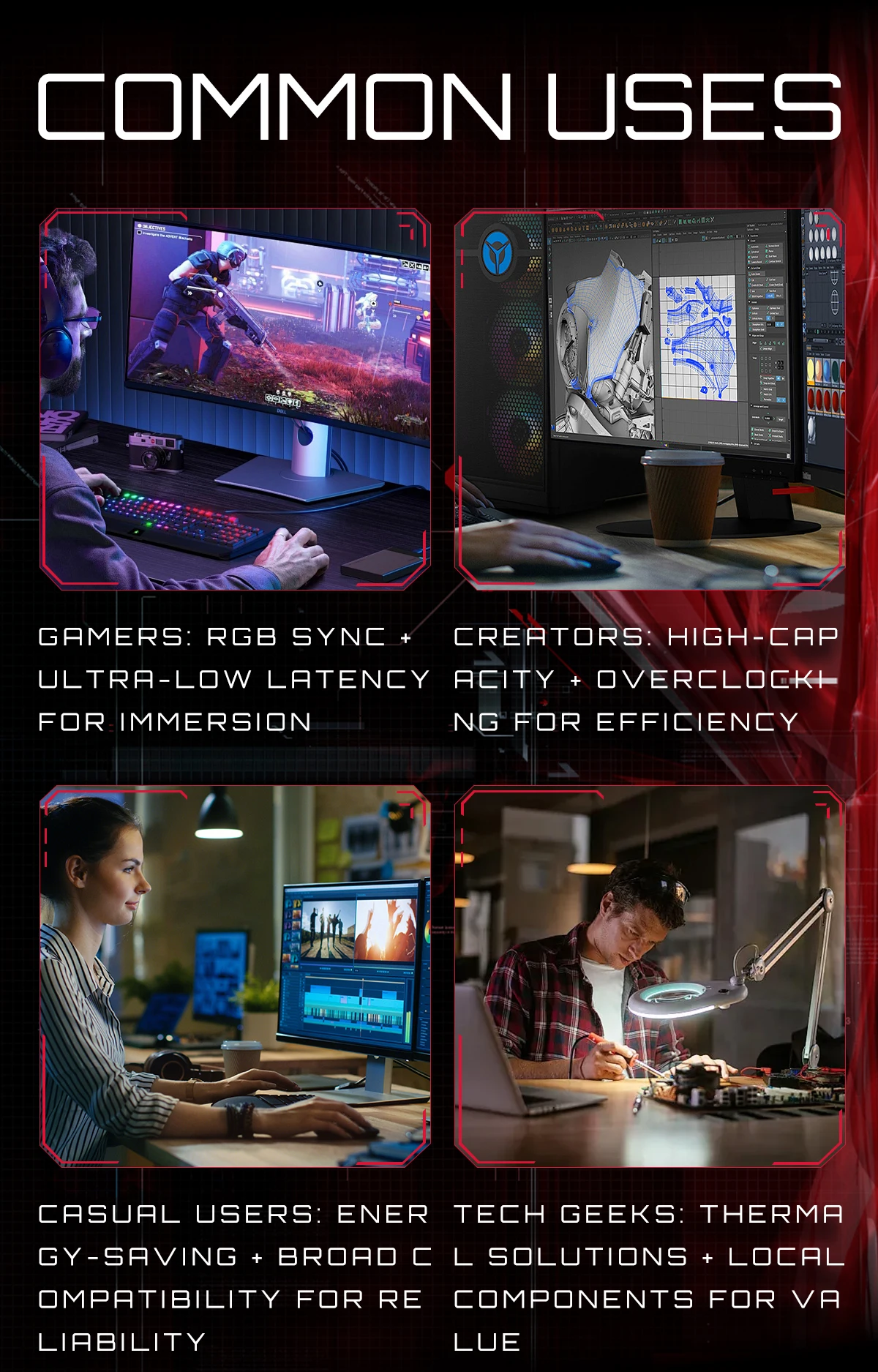 •Plug and play, high performance: supports 3200MT/s or 2666MT/s or 1600MT/s systems