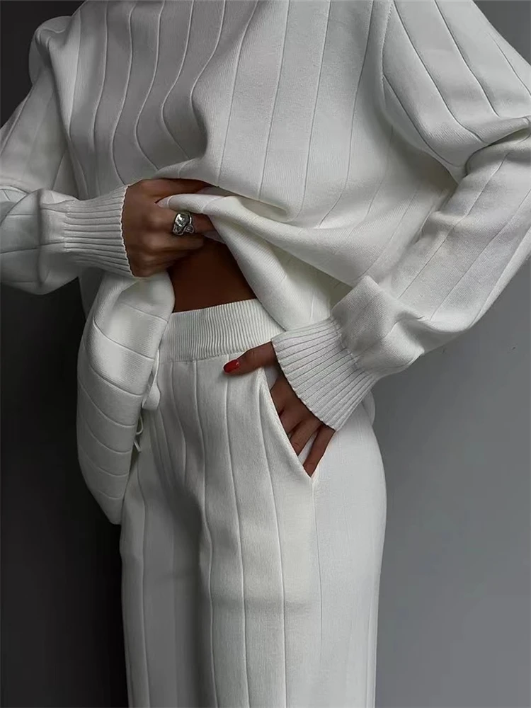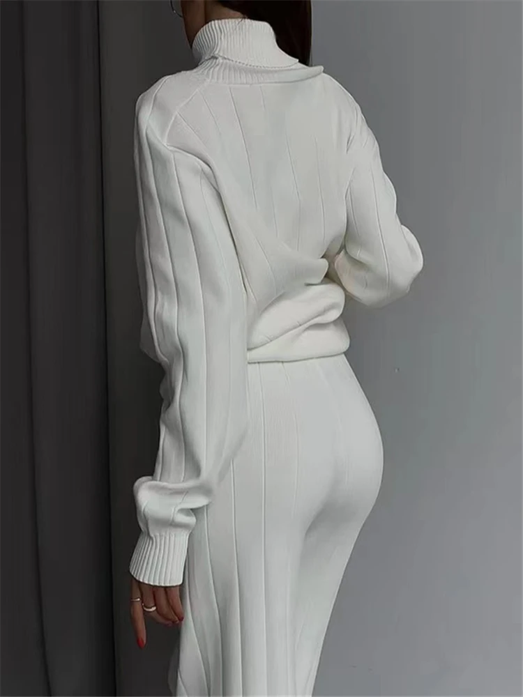 23 reviews for REALEFT Autumn Winter 2 Pieces White Women’s Sets Knitted Tracksuit Turtleneck Sweater and Straight Jogging Pant Suits 2023 New