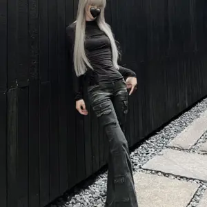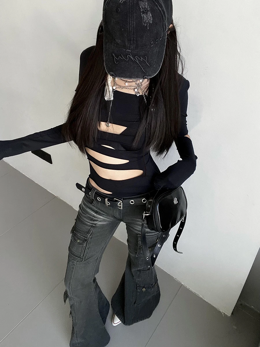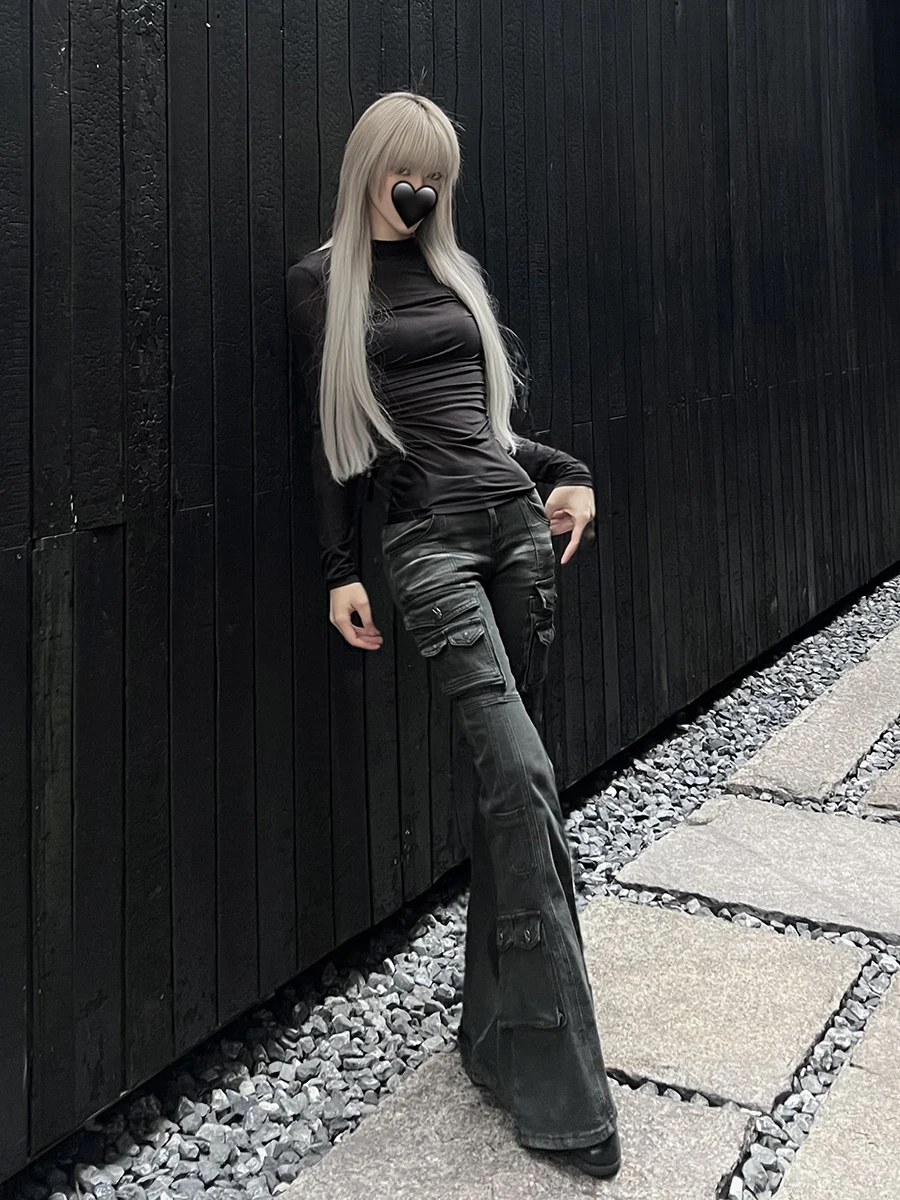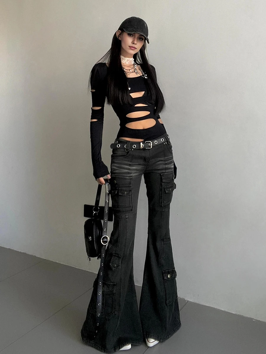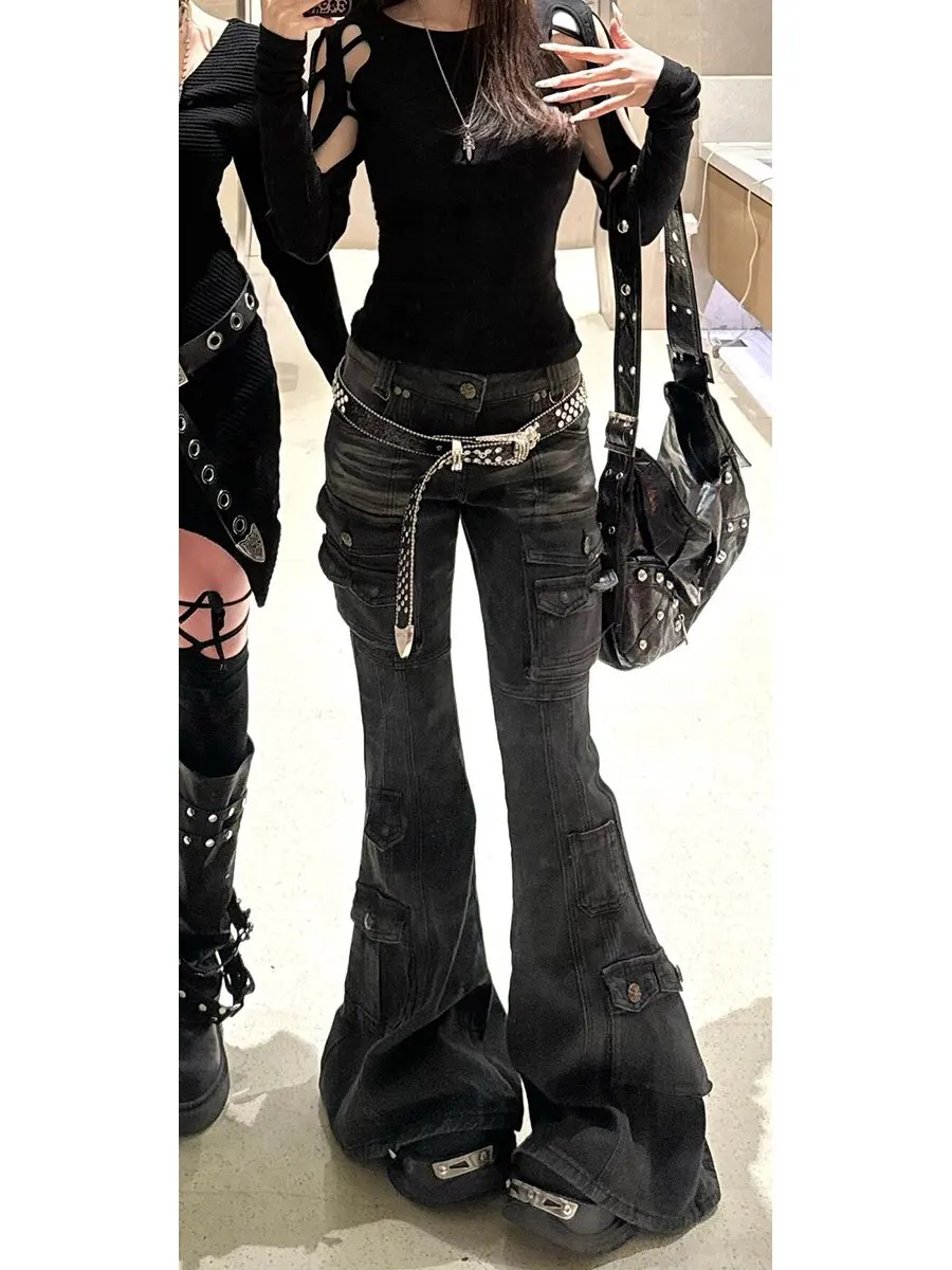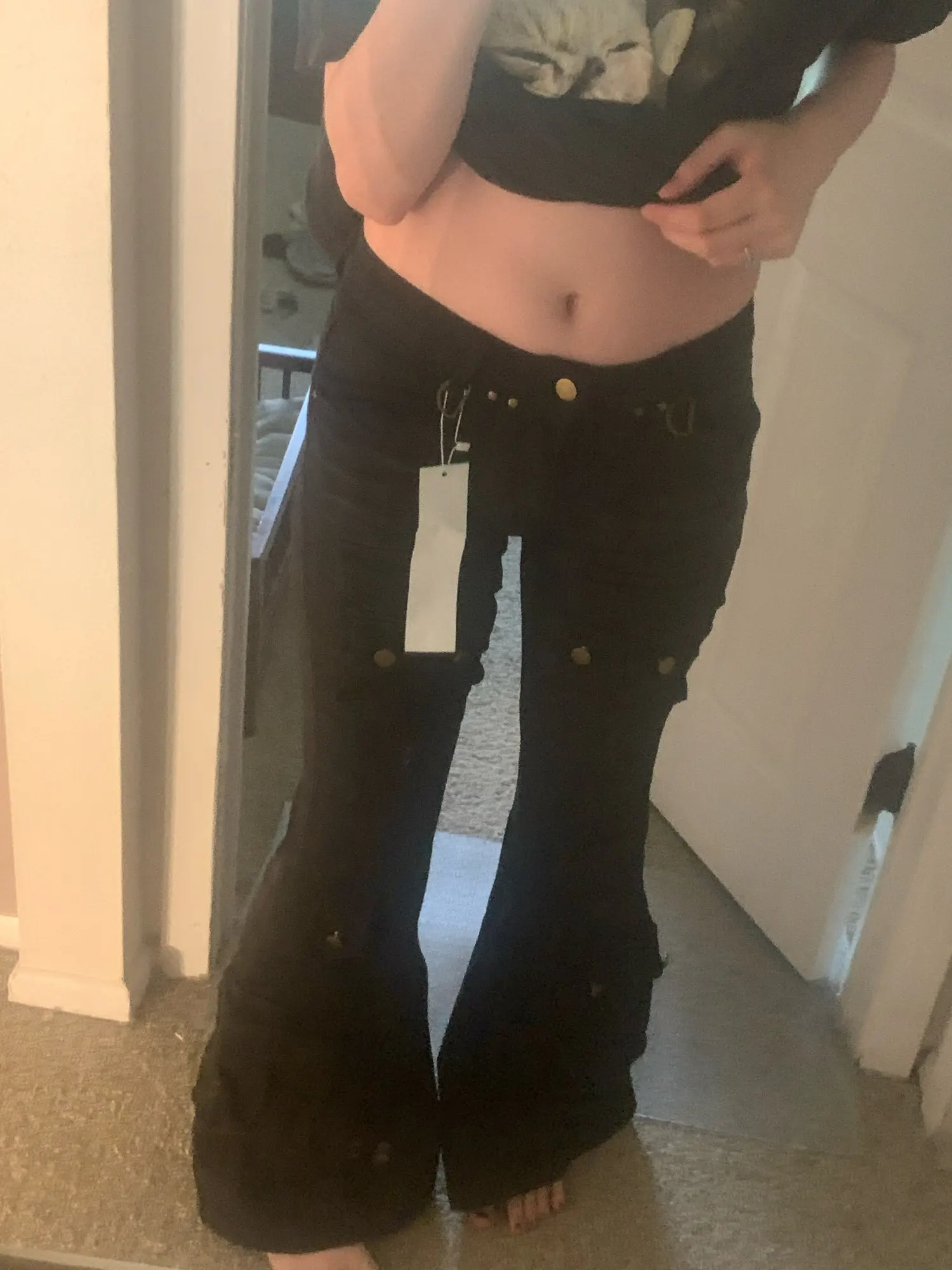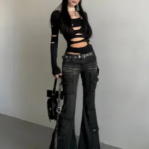 - Model Number: 8613-8,Acubi Fashion Black Flare Jeans