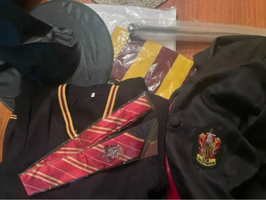 Package 2: 1*Cloak+1*Glasses+1*Wand+1*Tie+1*Scarf+1*Hat+1*Shirt+1*Sweater+1*Bracelet(9pcs)