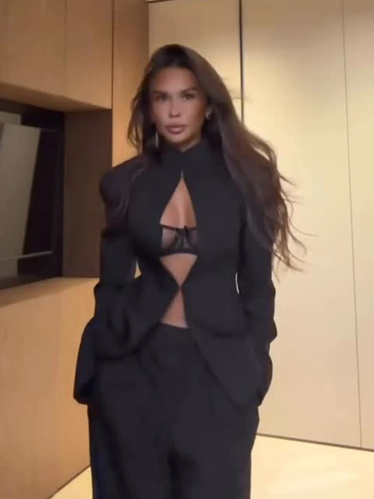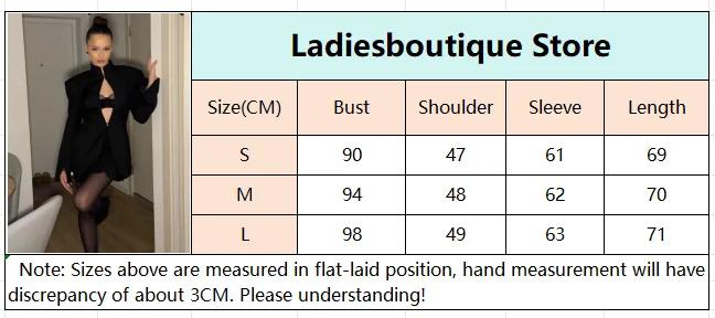 6 reviews for Sexy Black Hollow Out Blazer Dress Women Casual Full Sleeve V-neck Turtleneck Mini Dresses 2026 Lady High Street Fashion Robes