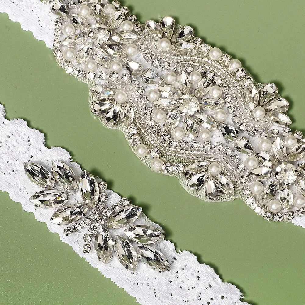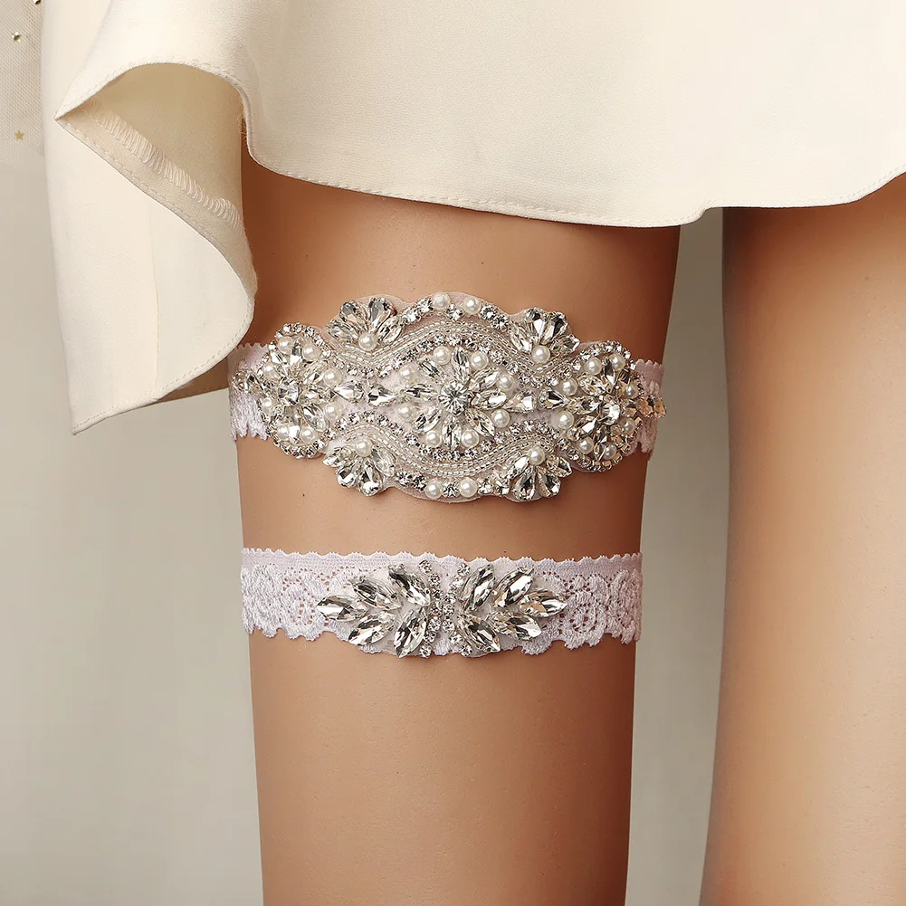 Rhinestone Wedding Garter Bride Accessories Women Silver Color Crystal Flower Bridal Suspenders for Party Dresses Gift