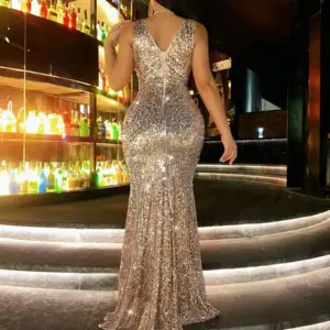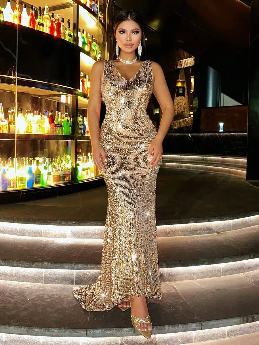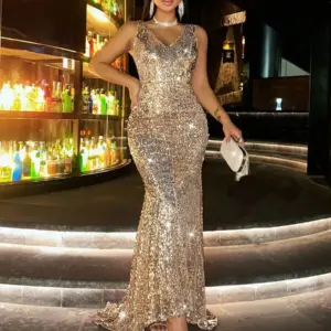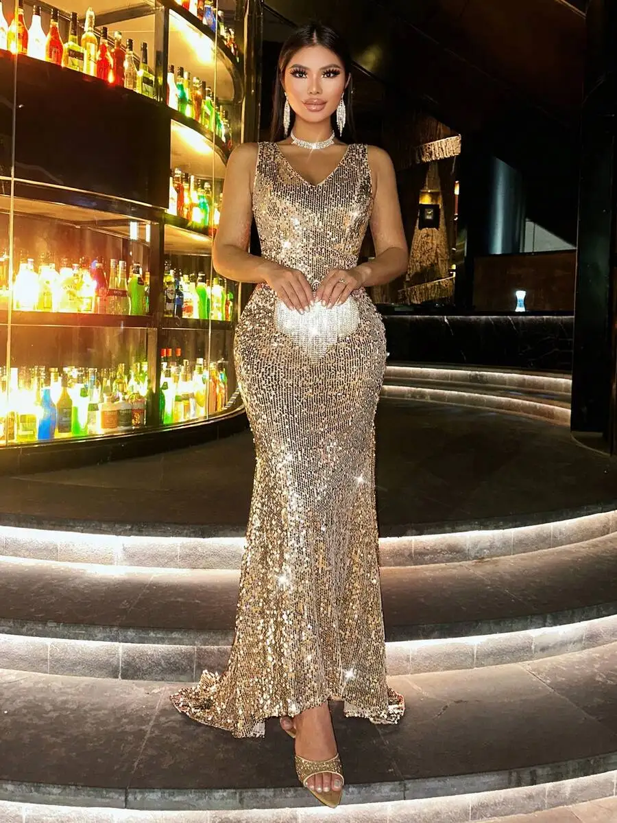Shiny Sequin V-Neck Backless Mermaid Dress for Party, Prom, Cocktail & Formal Events