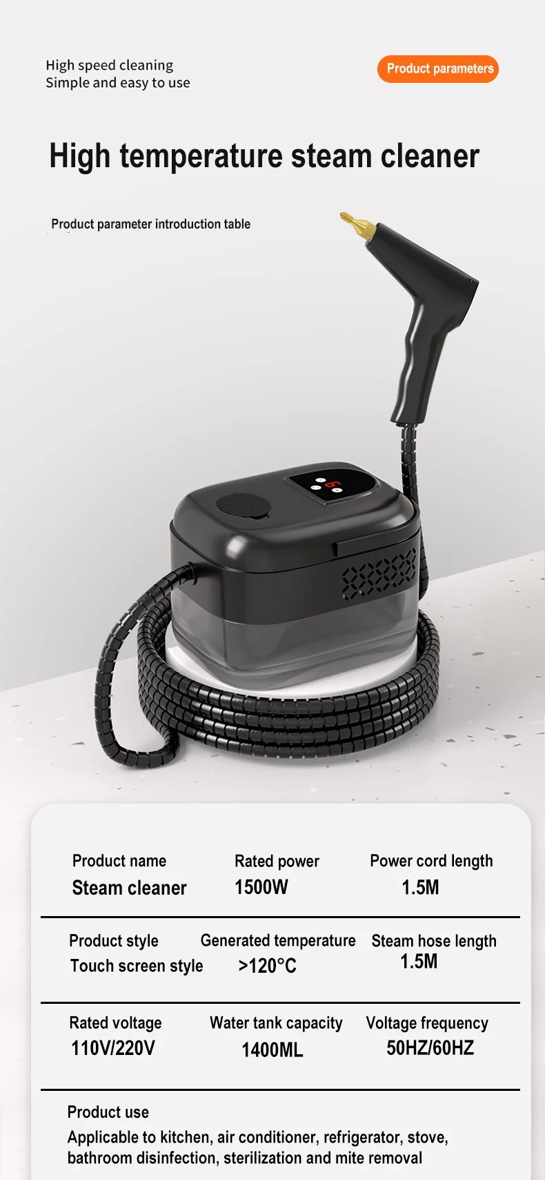 - Feature1: steam machine for cleaning