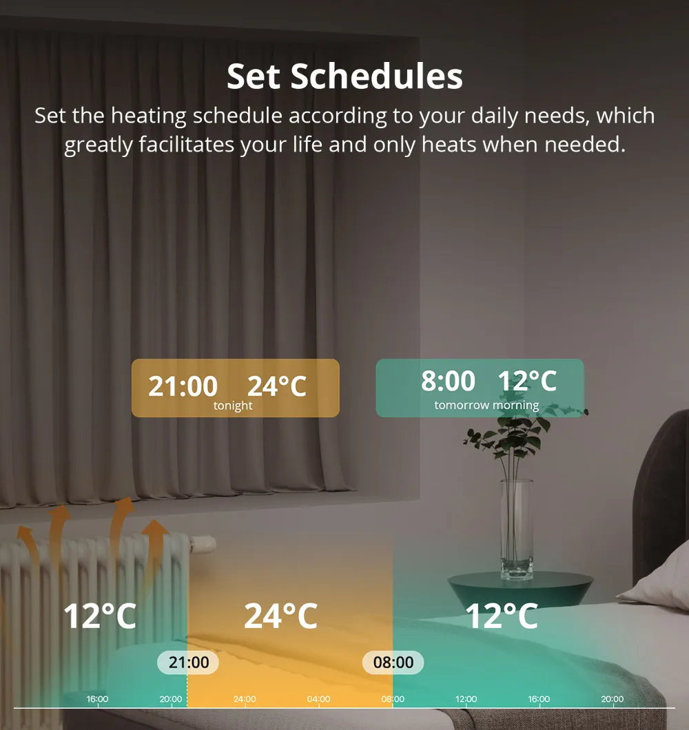 Set the heating schedule according to your daily needs, which greatly facilitates your life and only heats when needed.