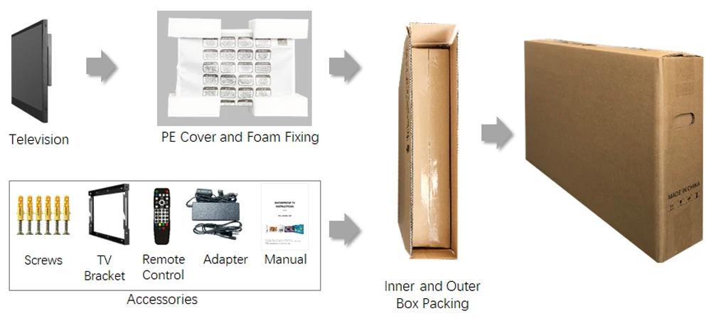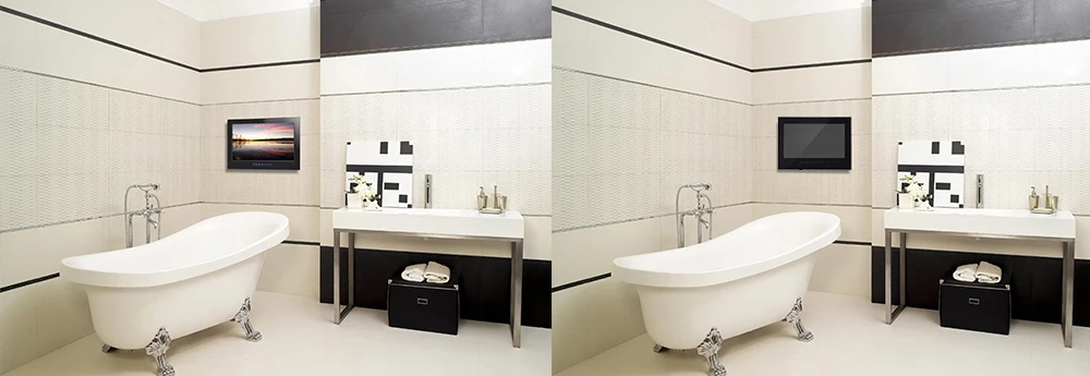 The waterproof TV is a completely sealed design, engineered for use in wet areas. It is rated IP65 or higher and can withstand not only moisture, but also water from any direction.