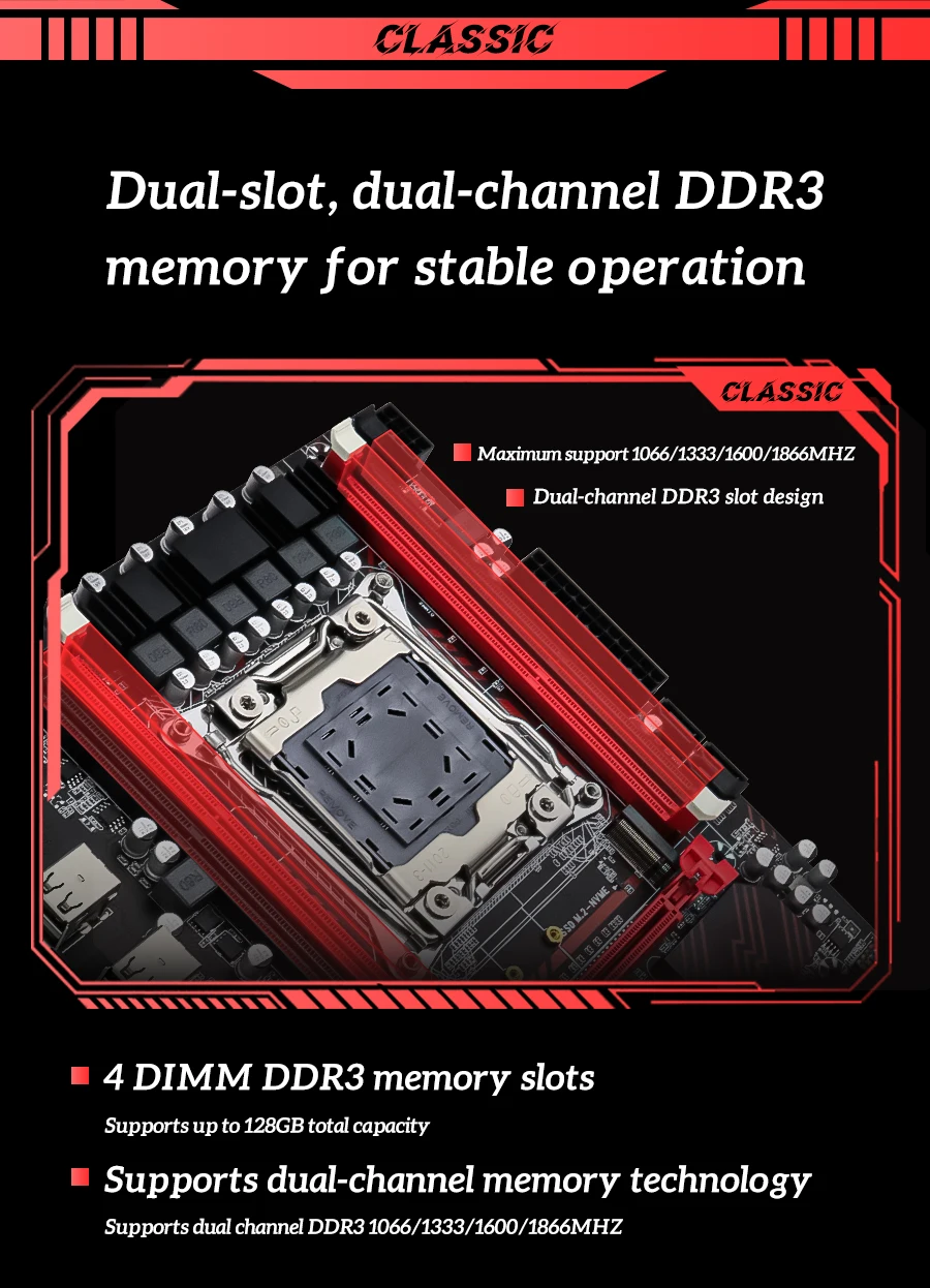 – **Dual-Channel DDR3**: Up to 128GB capacity
