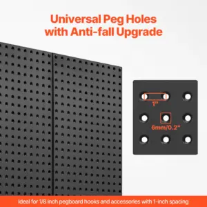 Built to Endure: Crafted from high-quality carbon steel with a powder-coated finish, this pegboard is designed to resist rust, corrosion, and wear. Its durability ensures that it will remain in excellent condition even after prolonged use in tough environments.