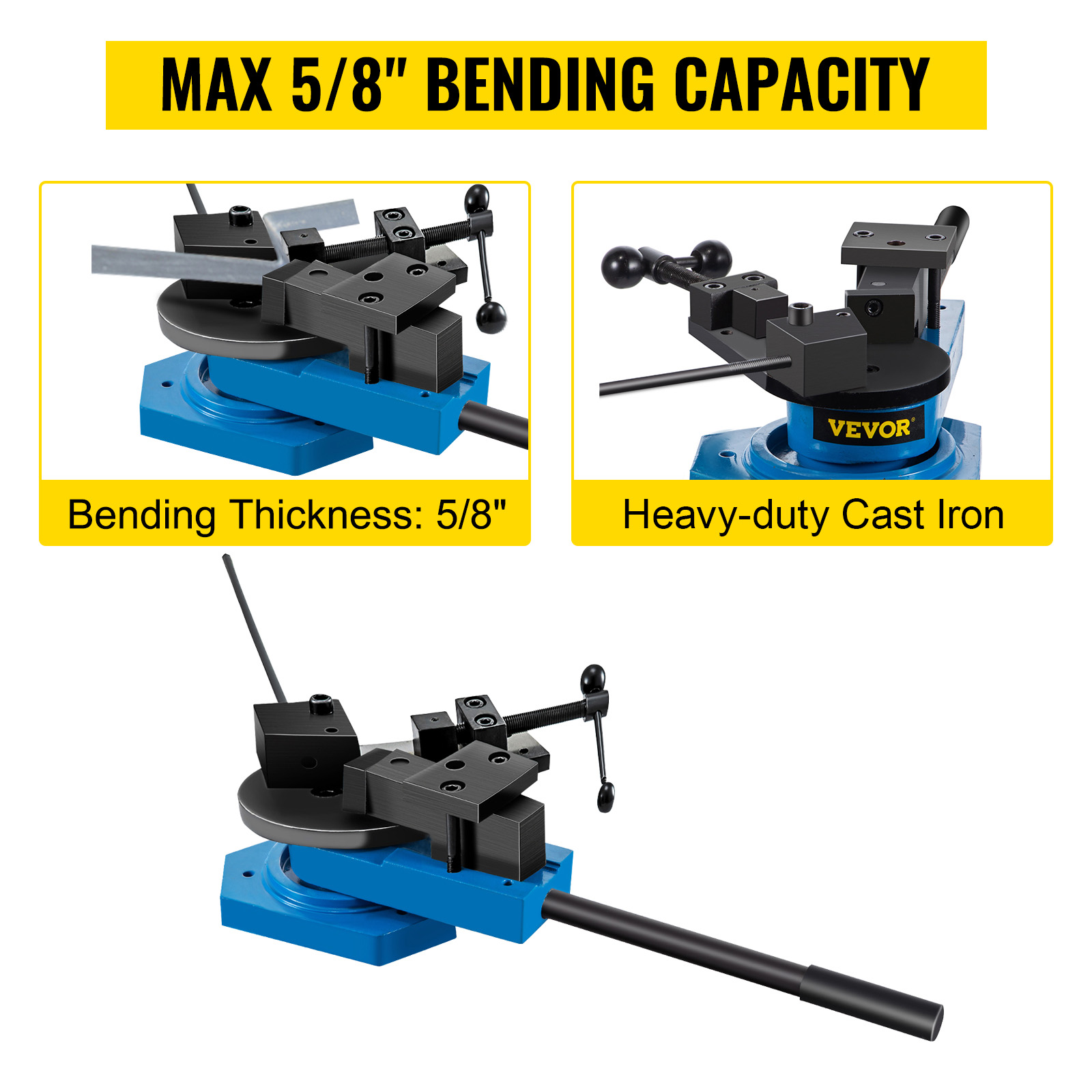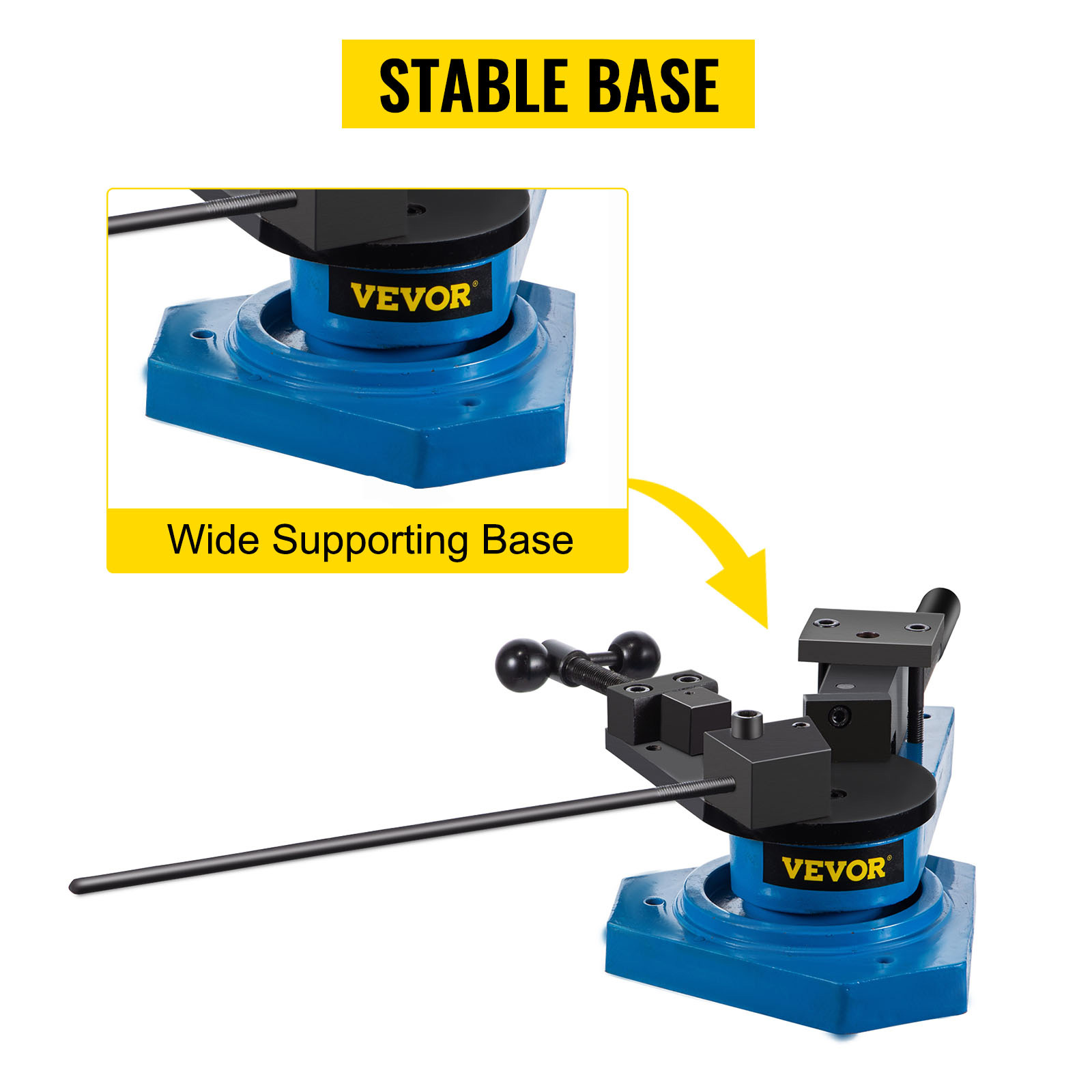 5/8″ Bending Capacity: The bender can easily and smoothly bend max thickness stocks the diameter of 5/8″ tubes. And The metal bending tool is made of high-hardness steel; it can be used for a long time. The heavy base improves stability during operation.