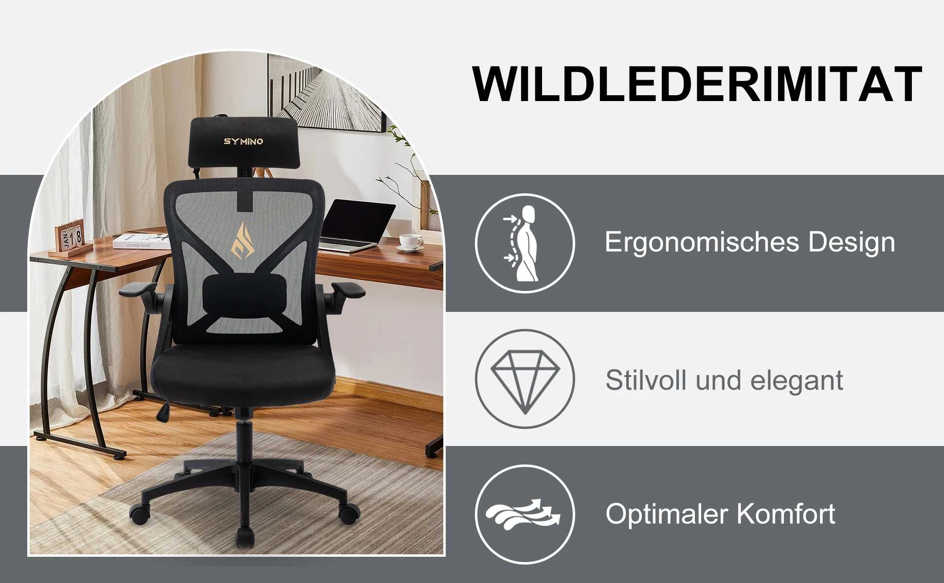 Symino Office Chair With Adjustable Headrest, Armrests, Lumbar Support, Ergonomic Office Chair, Rotating Rocker Function
