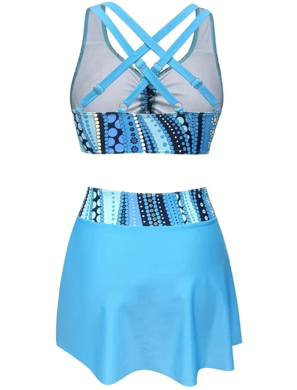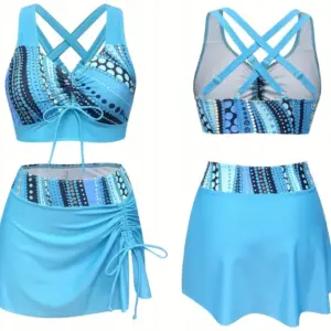 FASHIONABLE AND COMFORTABLE SWIMSUIT WITH BLUE SKIRT