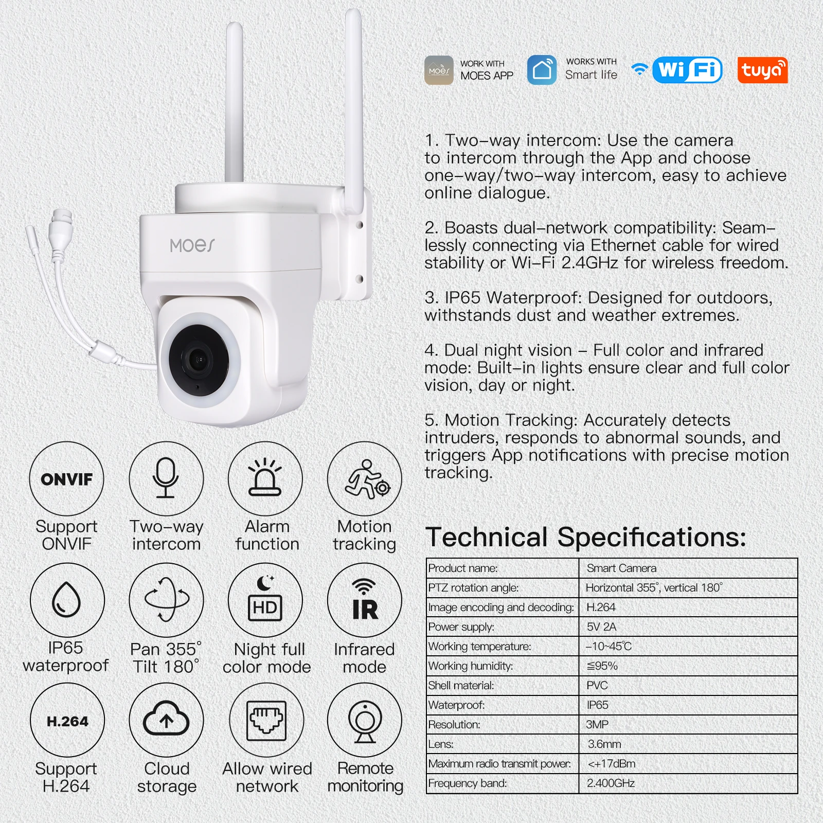 Tuya 5MP Home Security Camera Support Wireless &Wired Outdoor IP65 WaterproofIP Camera AI Auto Tracking Full Color Night Vision