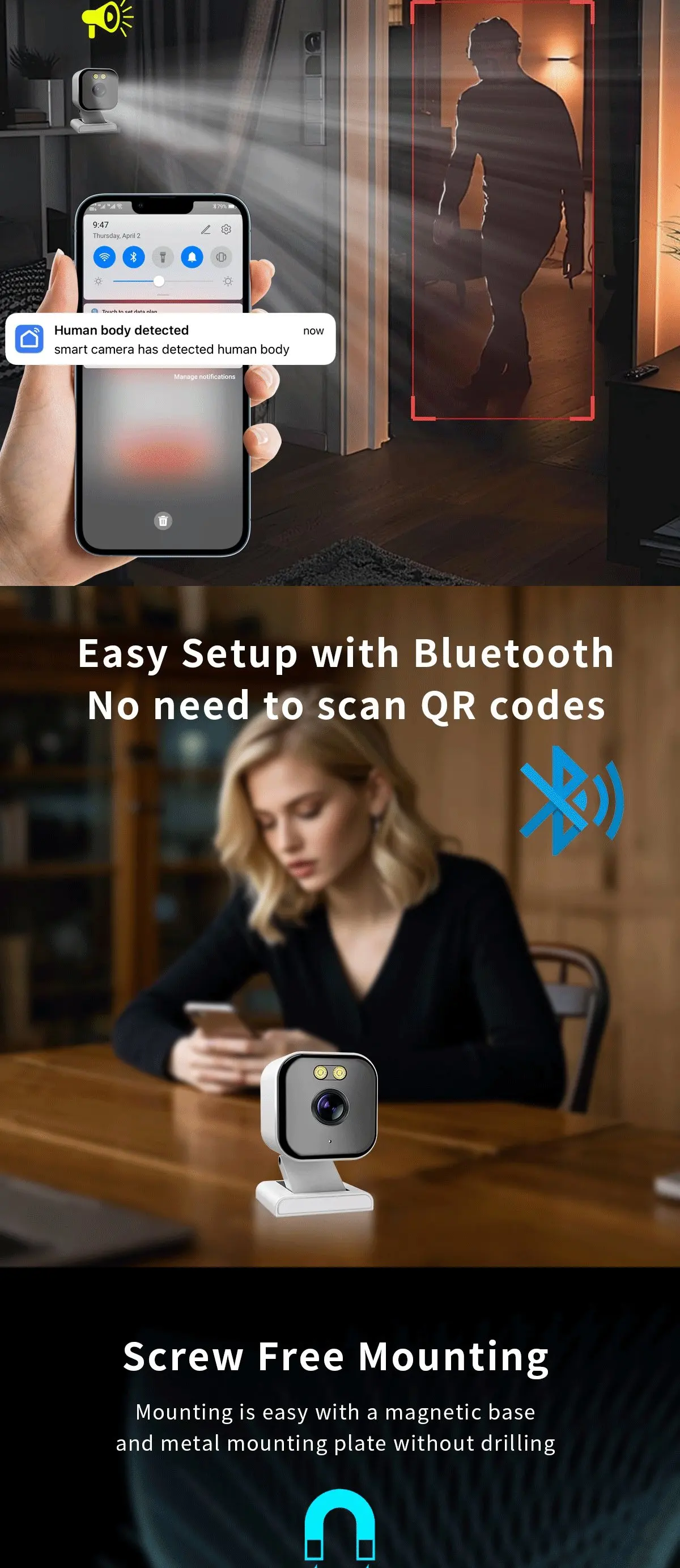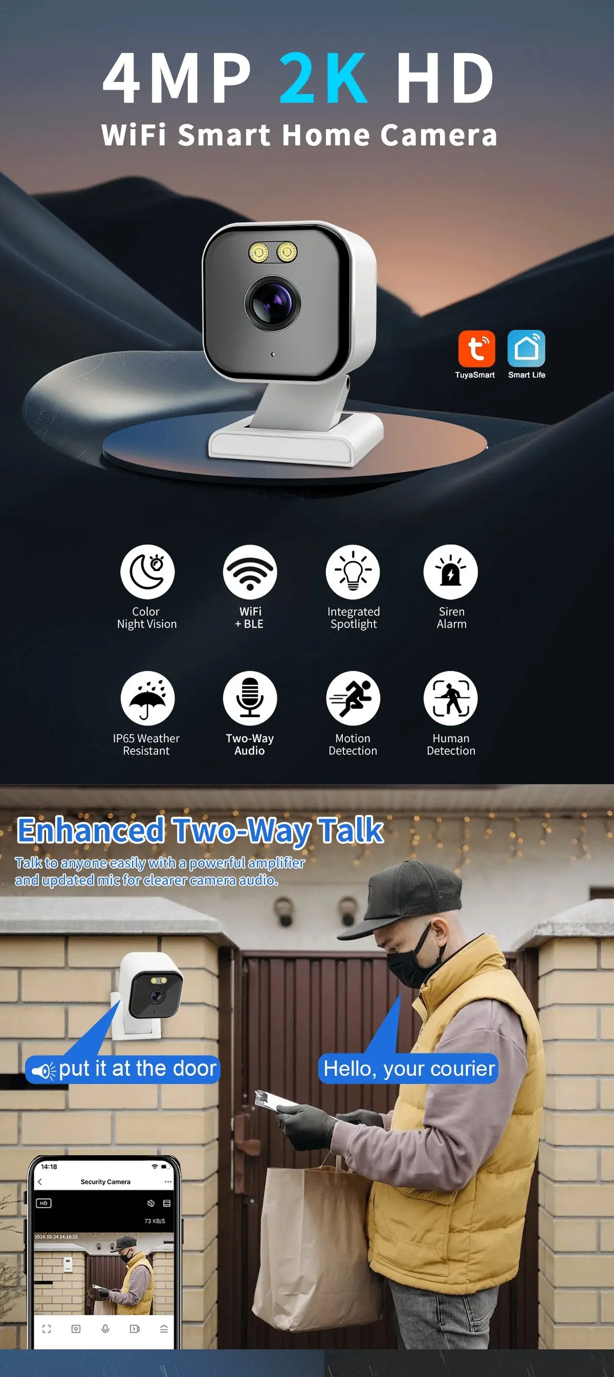 TUYA Magnetic 4MP Tuya Camera Wireless Mini Night Vision Wifi Baby Monitor Cam Outdoor Wateproof CCTV Video Surveillance Camera
