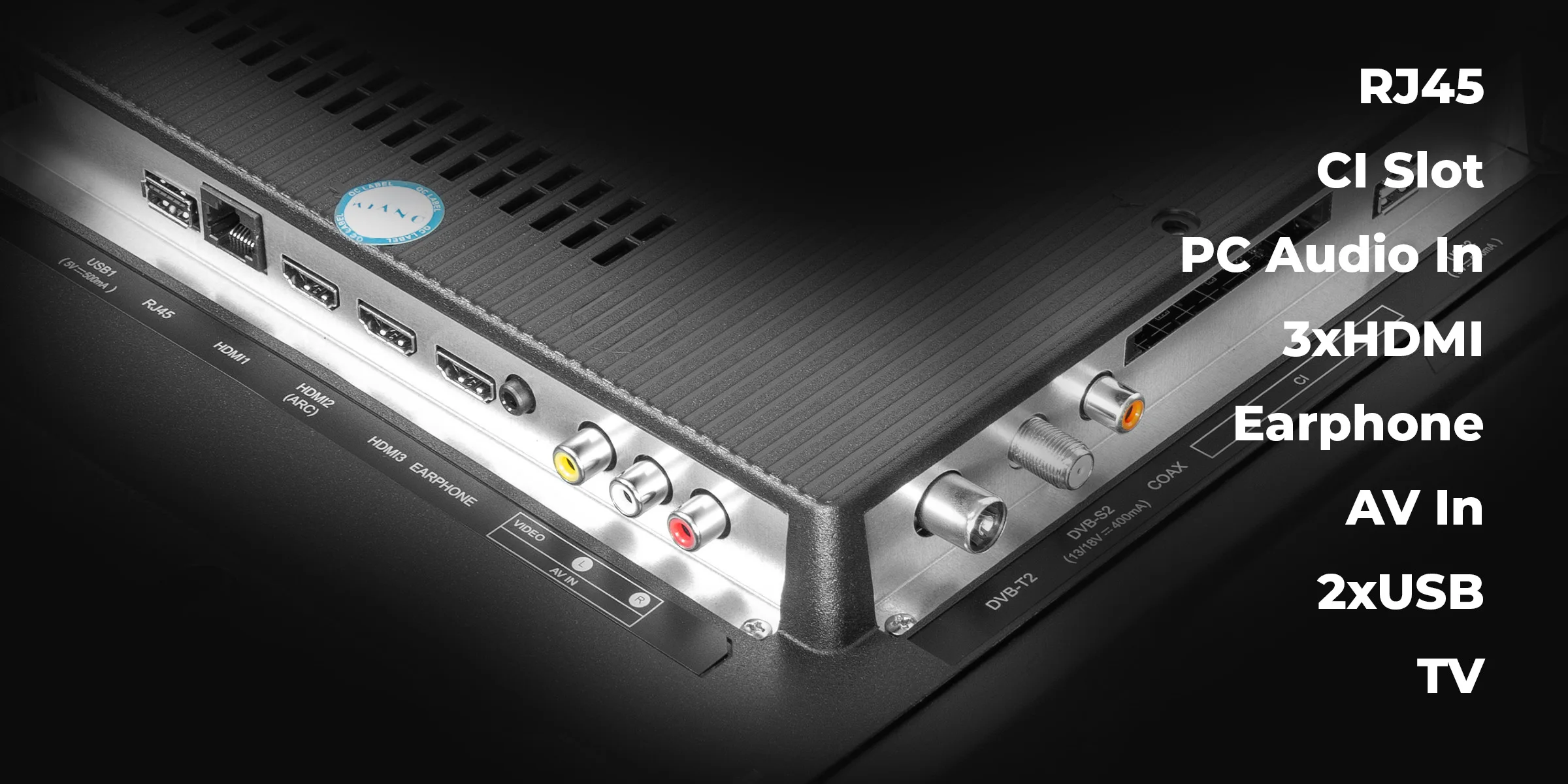 • CONNECTOR: RJ45, CI Slot, PC Audio In, 3xHDMI, Headphone Output, AV In, 2xUSB, TV