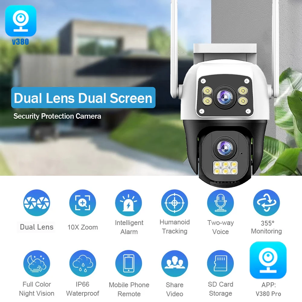 1. Dual lens, dual screen viewing 8 million pixel outdoor surveillance camera