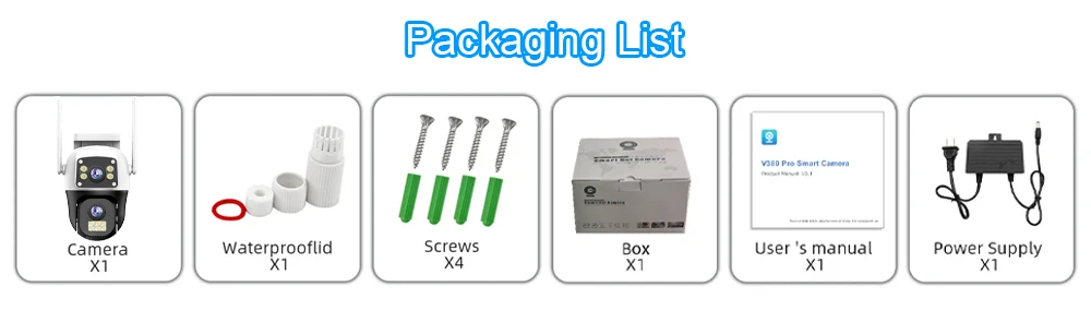 9. Waterproof/dustproof IP66: The camera shell is made of high-quality ABS plastic, with waterproof, sunscreen and dustproof functions. It works in any environment.