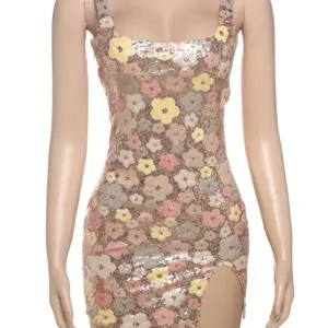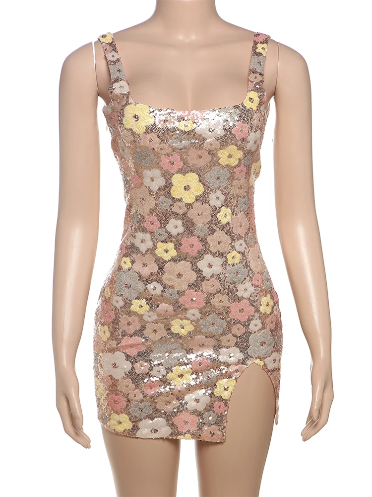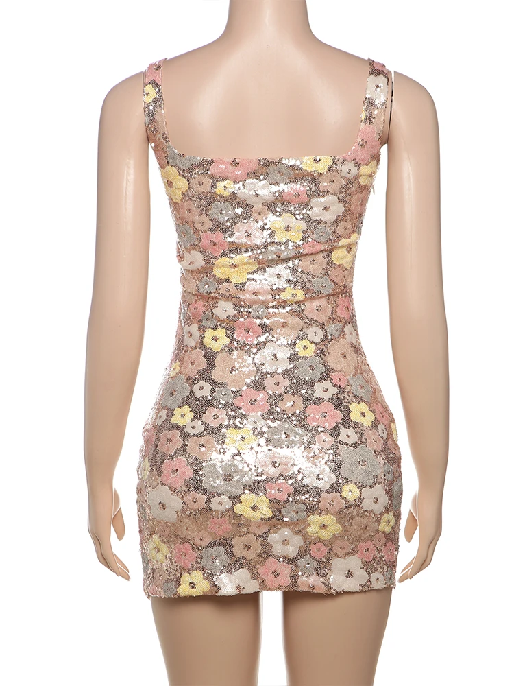 1. Weird Puss Colorful Flower Print Mini Dress Women Sequins Patchwork Skinny Backless Sleeveless Vacation Trend Elegant Outfits photo review