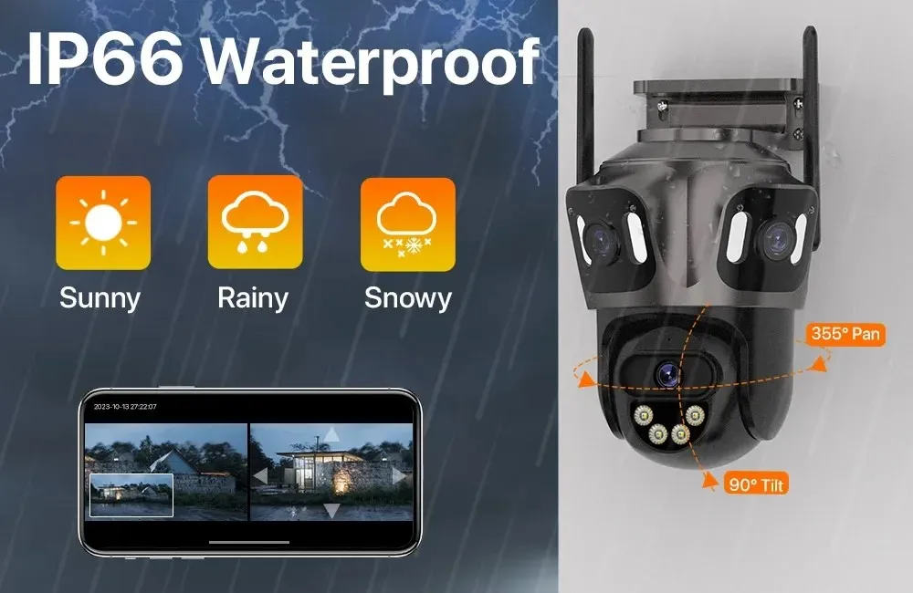 – Due to the horizontal 355° and the vertical 90 °, you can remotely control the wifi outdoor camera to view every corner via your mobile phone.