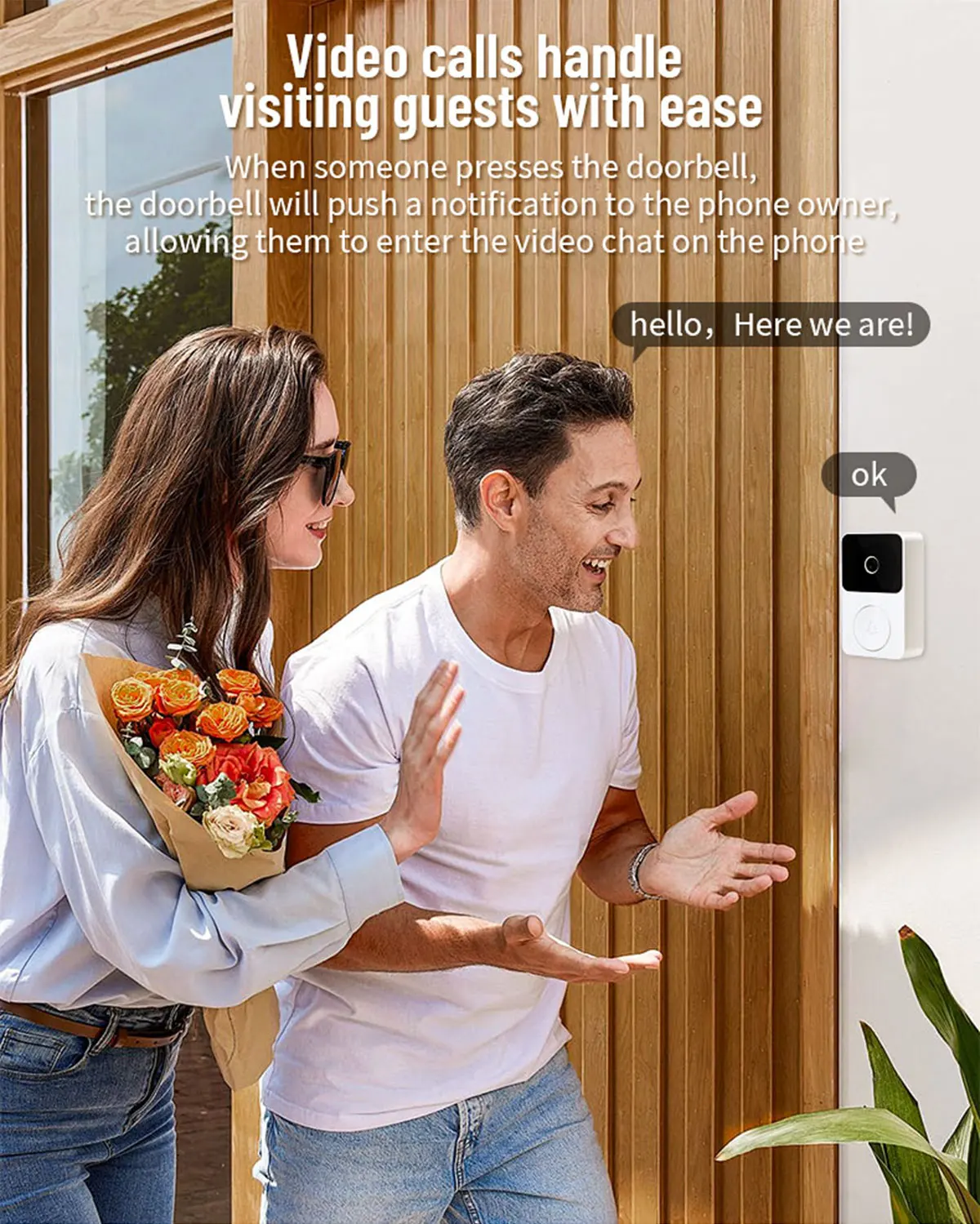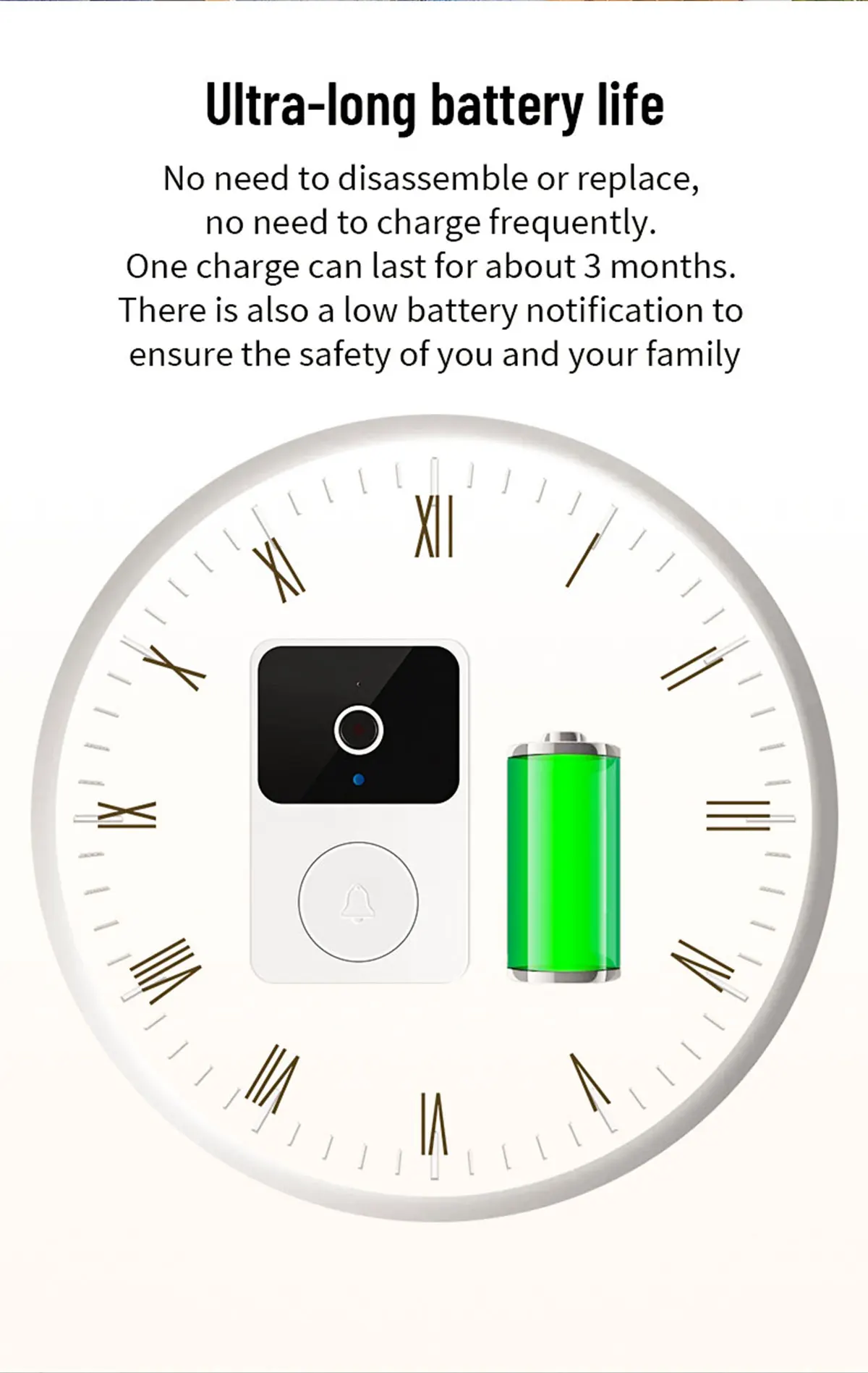 Enjoy the freedom of a wire-free video doorbell, powered by efficient dry batteries for uninterrupted security.