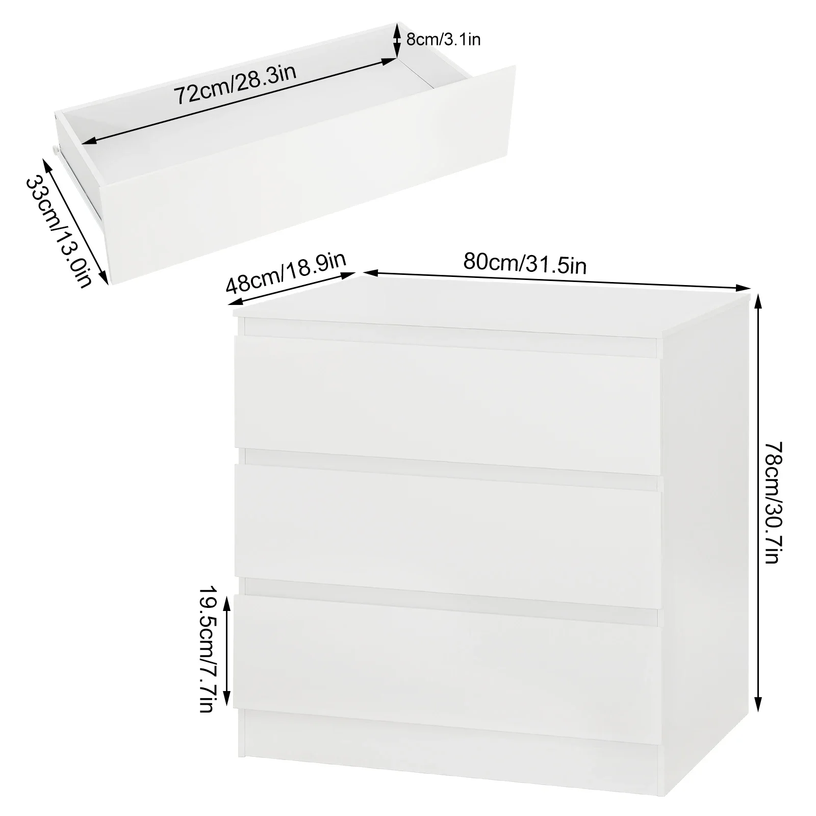 • Chest of drawers dimensions:80 x 78 x 48 cm (W x H x D)