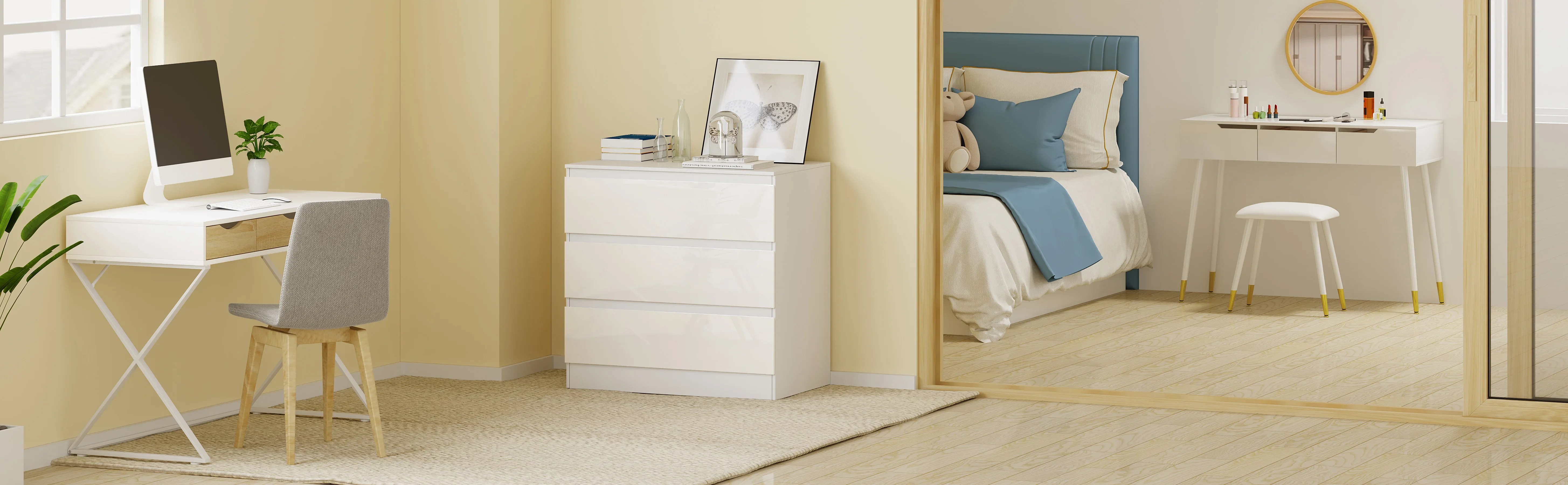 WOLTU 1SET Baby Changing Table 3-Drawer Chest Storage Cabinet Sideboard Wardrobe Bedside Table for Bedroom Study Living Room