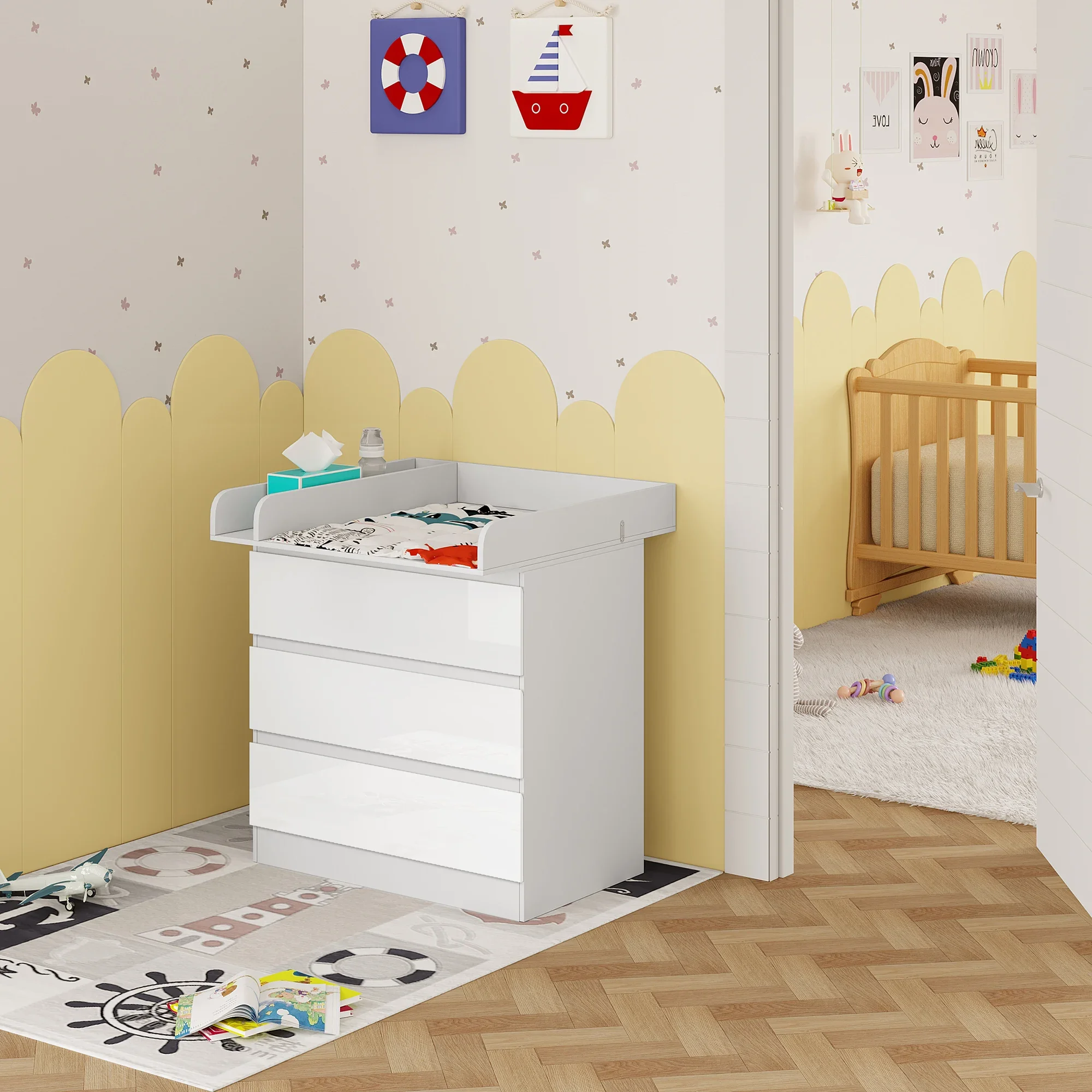 • Large storage space: the changing table is equipped with 3 large drawers for storing baby items such as nappies, towels and clothes, so you always have the necessary utensils at hand