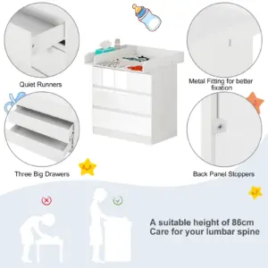 • Care for the spine: At a reasonable height of 86 cm, the changing table can reduce the risk of lumbar muscle strain, caused by frequent bending when changing nappies