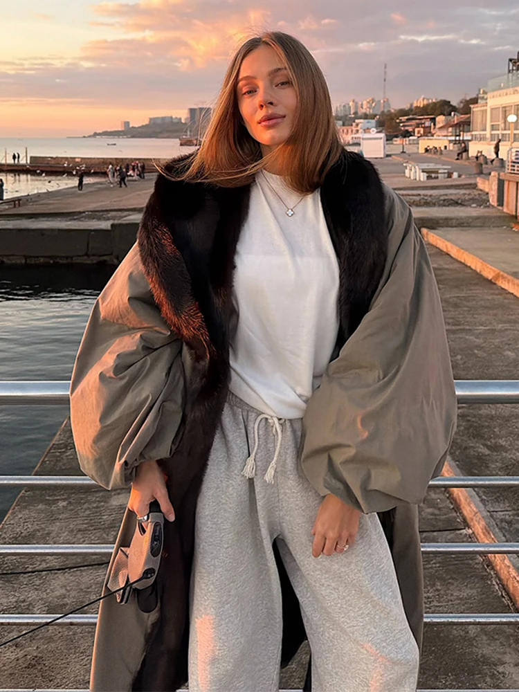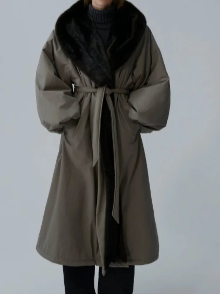 1 review for Women’s Autumn Winter Faux Fur Collar Maxi Jacket Full Sleeve Lapel Long Jacket Luxury Warm Coat 2025 New Lady Fashion Outwear