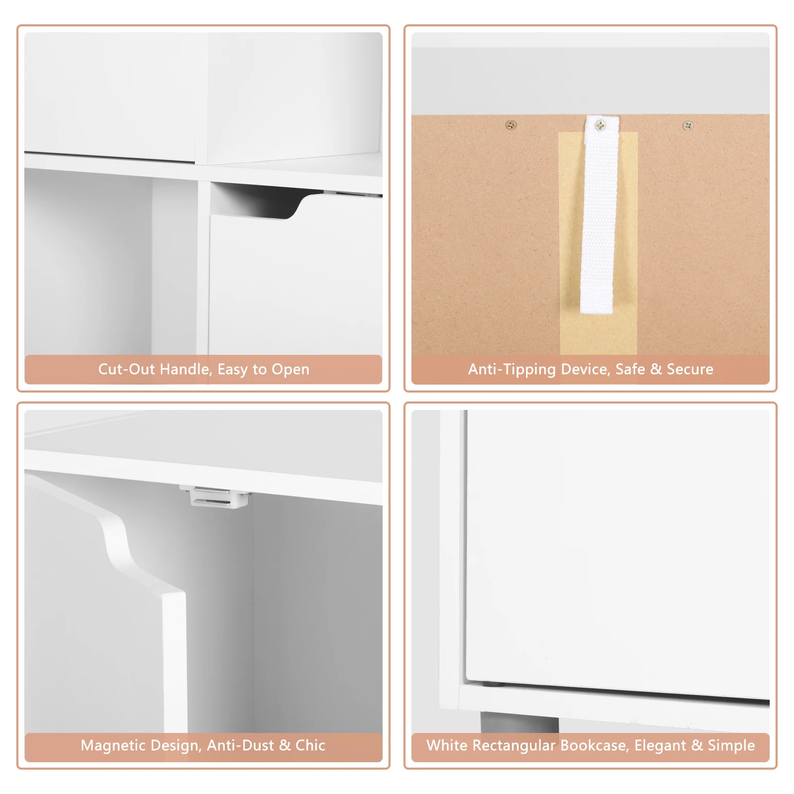 Stable and Safety Construction]: Made of premium durable white wood(MDF),This open display storage bookcase is super sturdy once built up. Moreover, there is a back tip make the book shelf firmly anchored to the wall, so it’s safety and will not fall over.