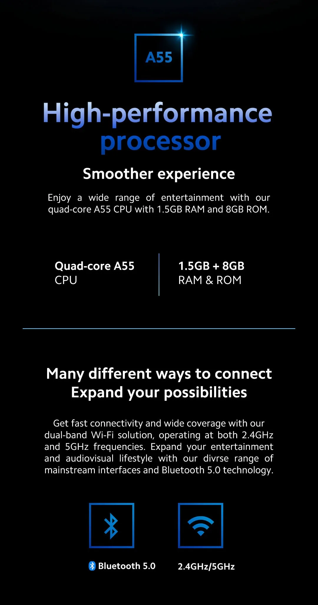 - Smart Home: Smart home control hub,Chromecast built-in,Supports Miracast,Supports Miracast