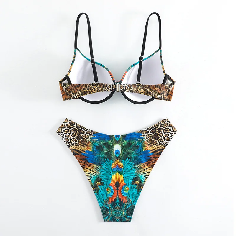 XS-XXL sexy peacock leopard print high waist push up bikini set two pieces swimsuit beachwear bathing suit swimwear biquini