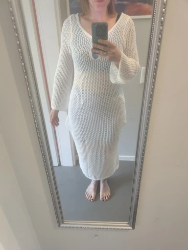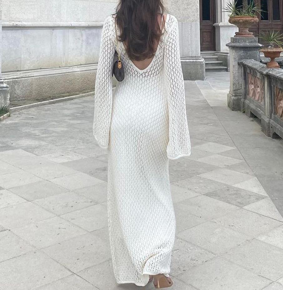 4 reviews for Yiiciovy Sexy Women Long Knit Beach Dress Hollow-Out Deep V-Neck Long Sleeve Bikini Cover-Ups Dress Fall Backless Holiday Dress