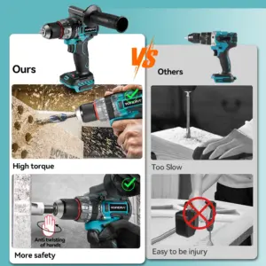 – 3 in 1 Hammer Drill Function/ Screwdriver Function/ Flat Drill Function.