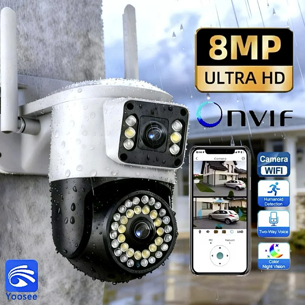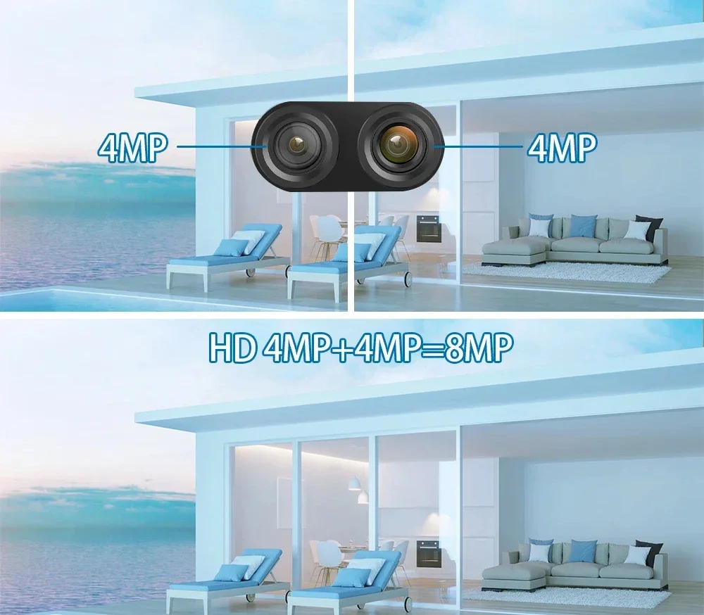 Storage: Supports up to 128GB TF Card and Cloud Storage (Need Pay For) Rotation Angle: Horizontal: 355°; Vertical: 90° Features: Wifi 8mp 4k Dual Lens Outdoor Security Ip Cameras Yoosee Intercom Method: Two-Way Voice CallNight Mode: Infrared Night Vision