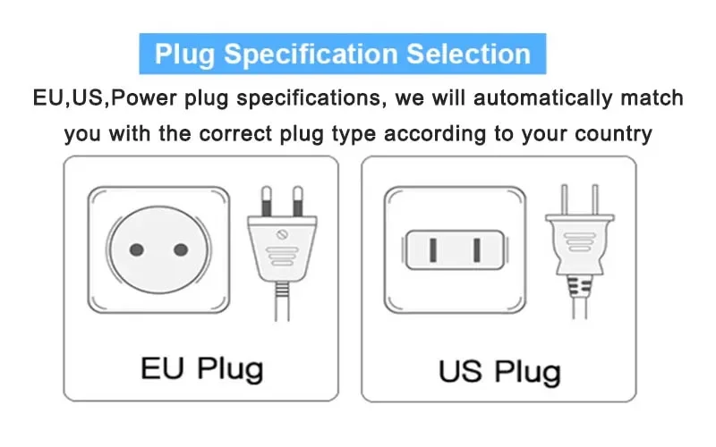 EU,US,Power plug specifications, we will automatically match